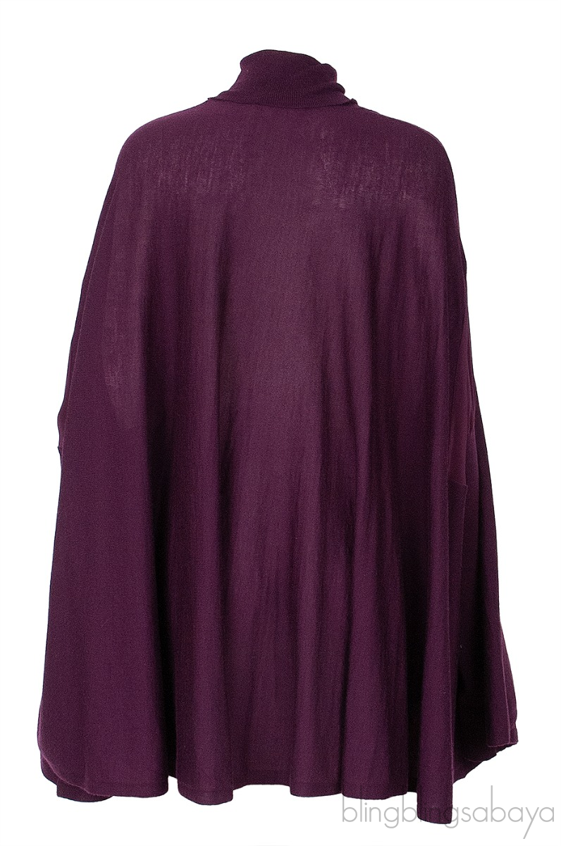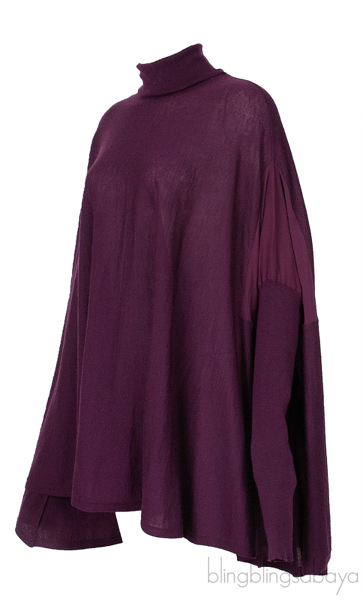This Long Sleeves Turtle Neck Poncho Top from Salvatore Ferragamo is crafted in soft, lightweight and comfy purple fabric featuring a turtle neckline, long sleeves, oversize with long back hemline.