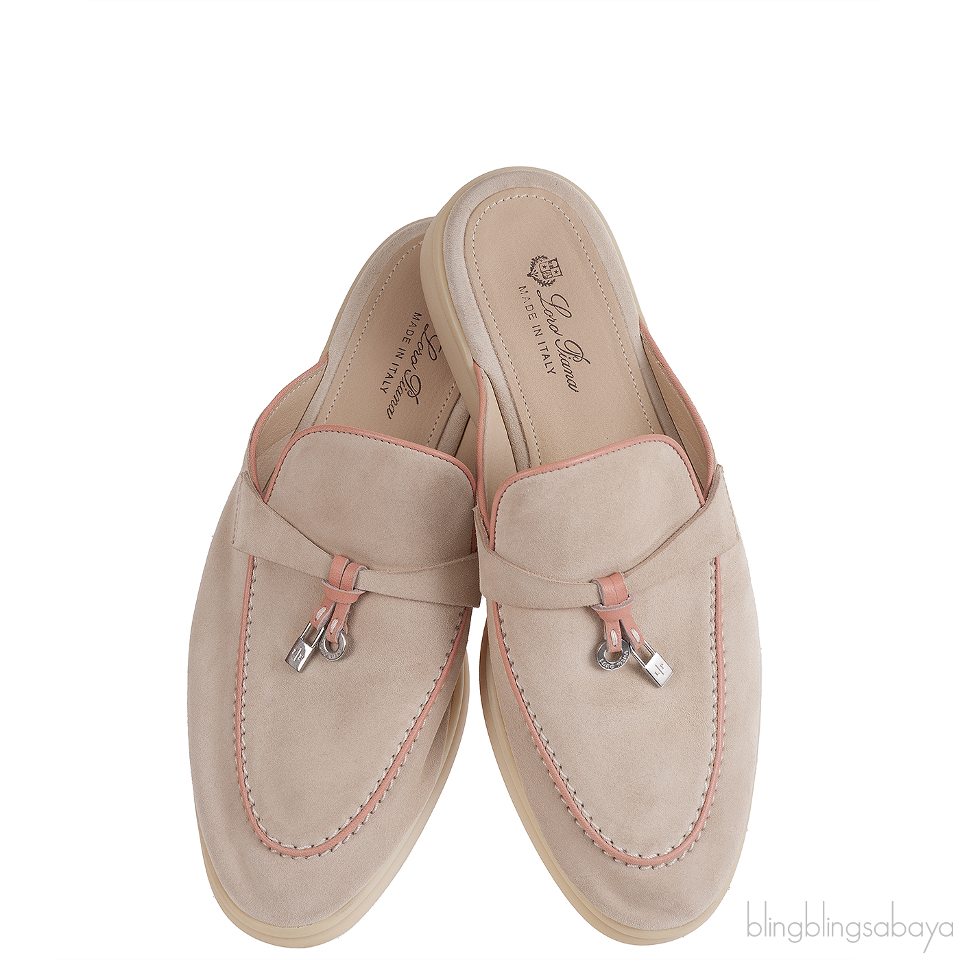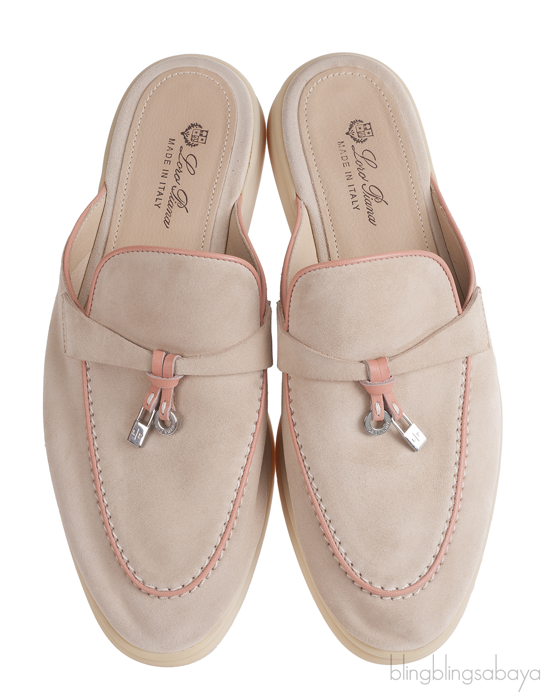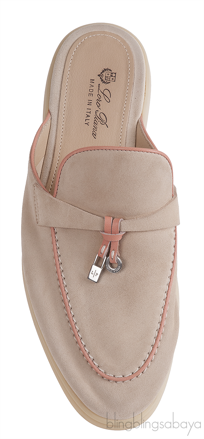 Loro Piana Babouche Charms Walk Loafers Beige Pink Mules