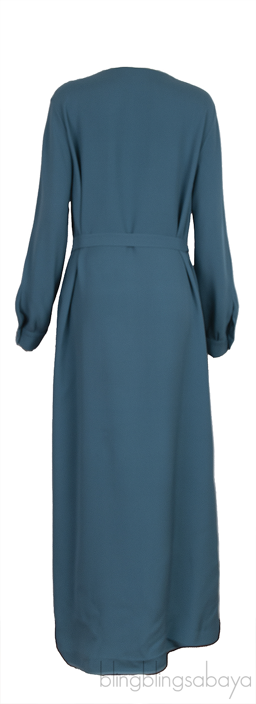 Blue Green V-neck Belted Dress