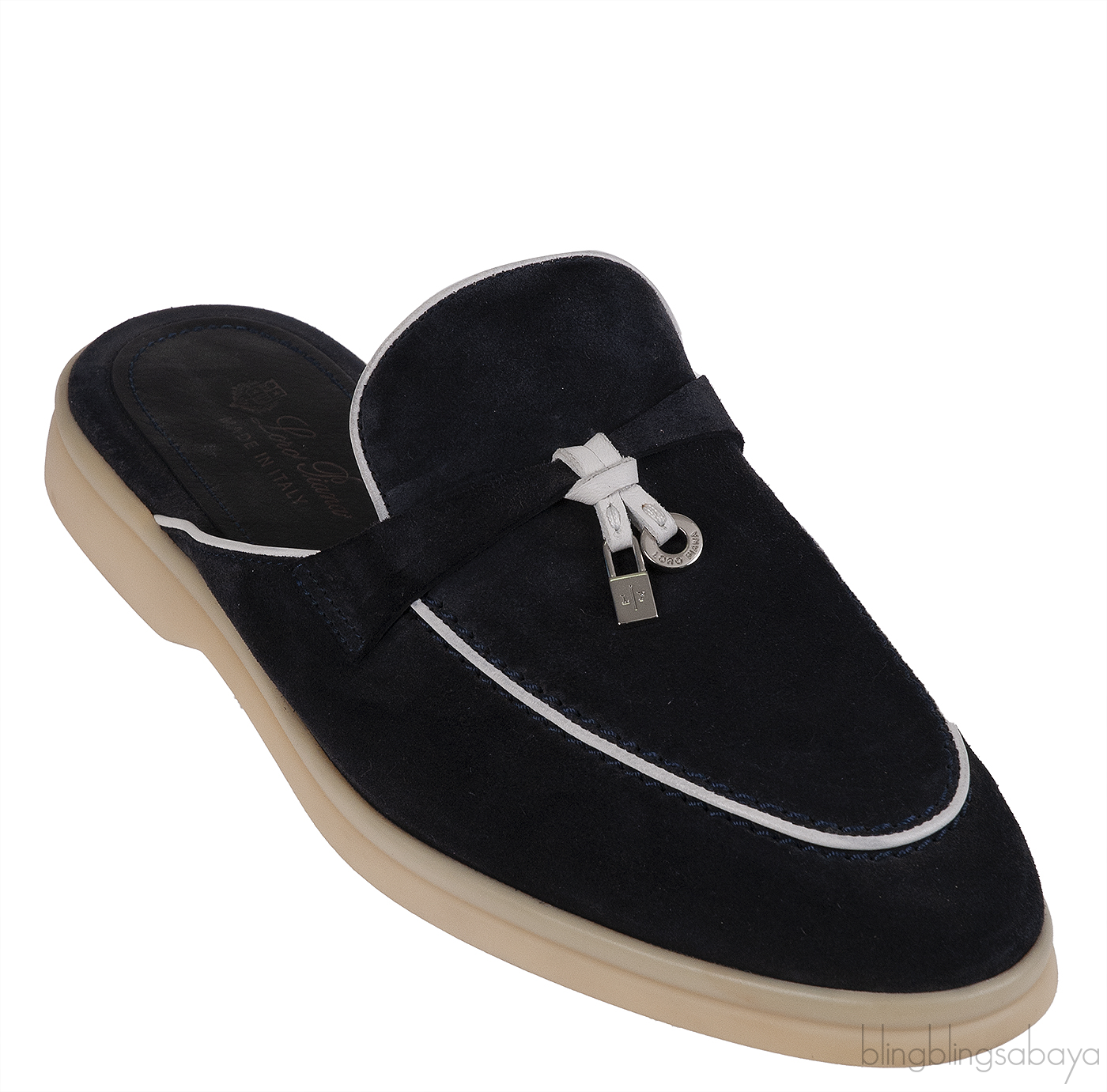 Loro Piana Charm Walk Babouche Suede Black Mules