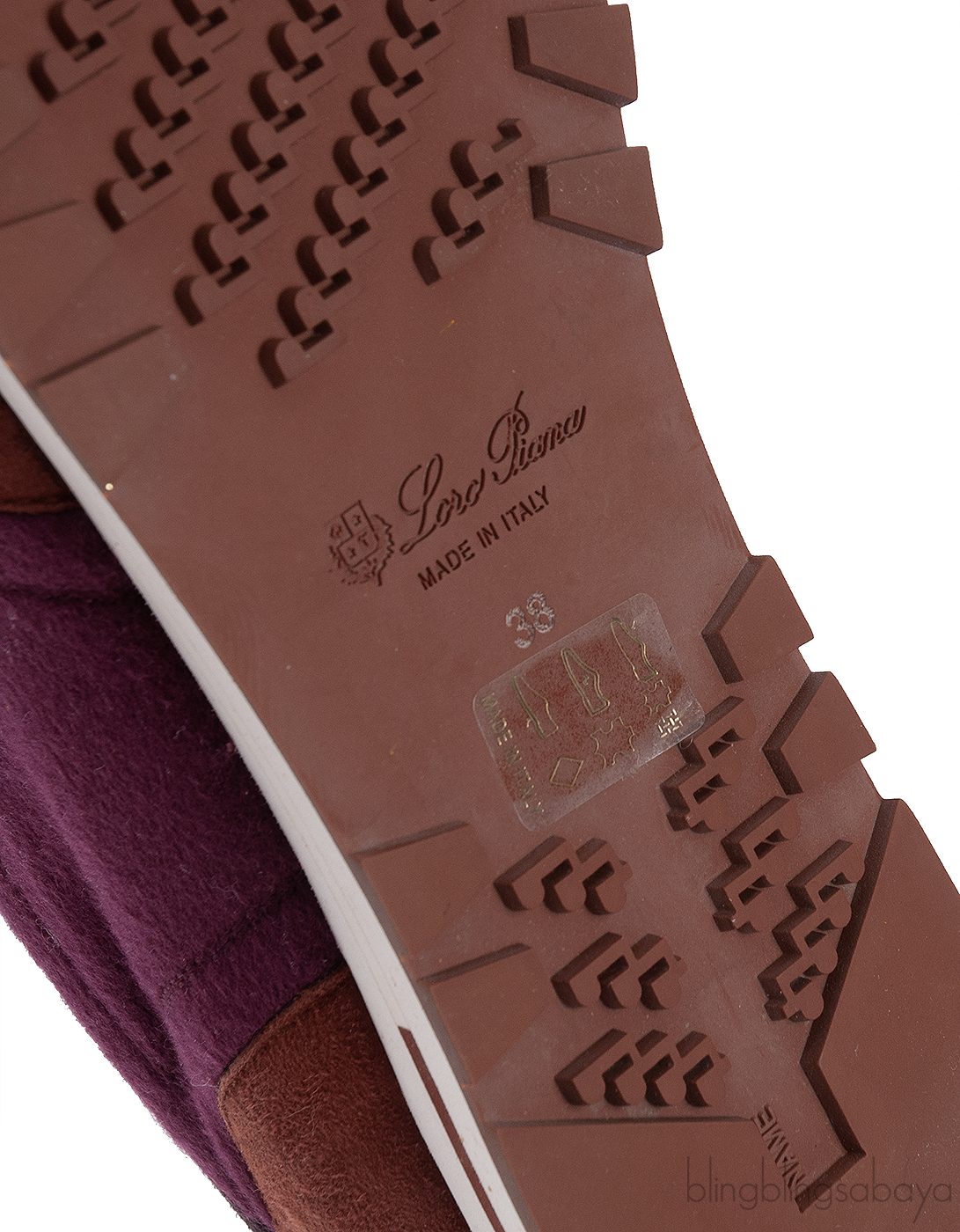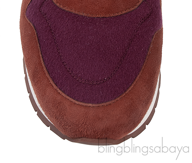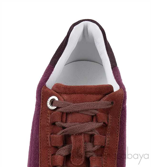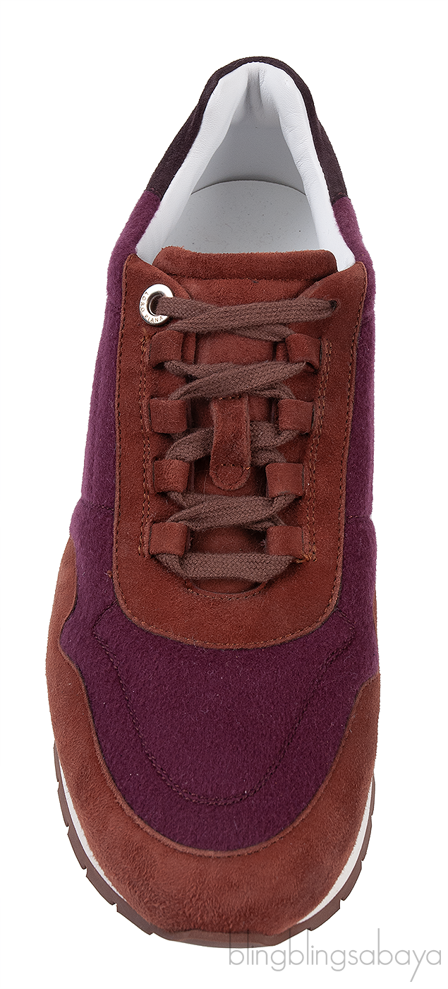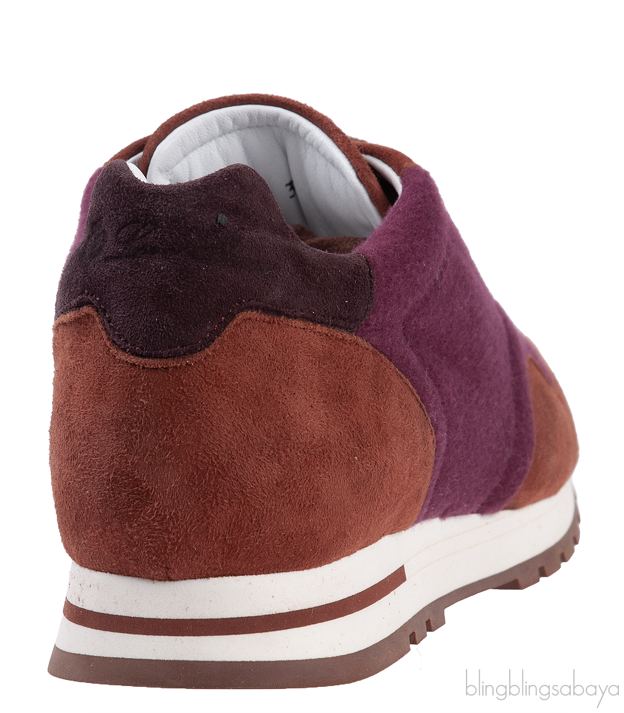 These stunning and sophisticated My Wind Tri-color Cashmere Suede Leather Sneaker from Loro Piana are crafted from a cashmere and suede leather. These sneakers features a tri-color upper plum, brown and dark brown suede and is finished with a single Bordeaux line and the house's logo2 and brand engraved at the rubber sole.