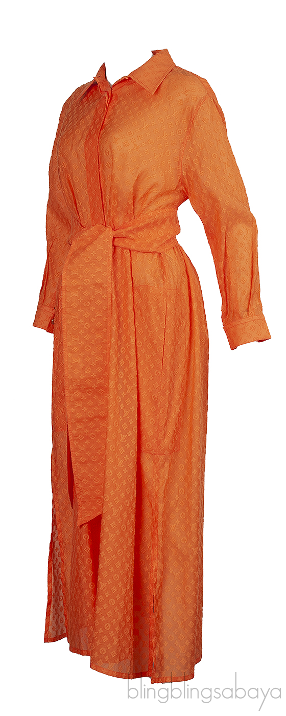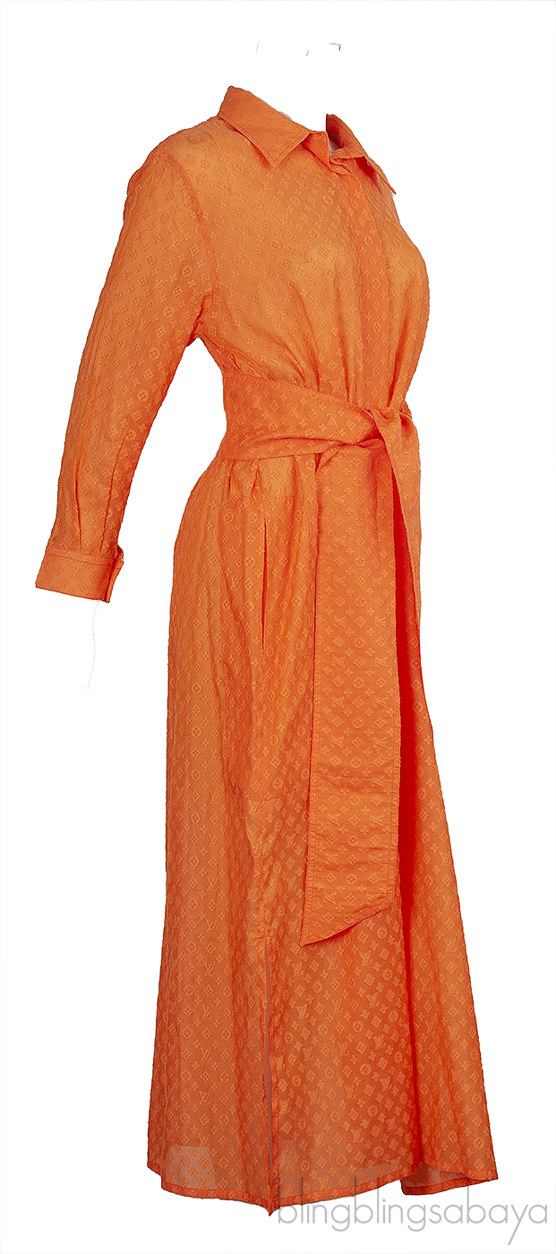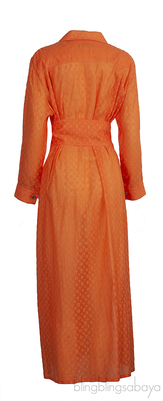 Louis Vuitton Fil Coupe Orange Shirt Belted Dress