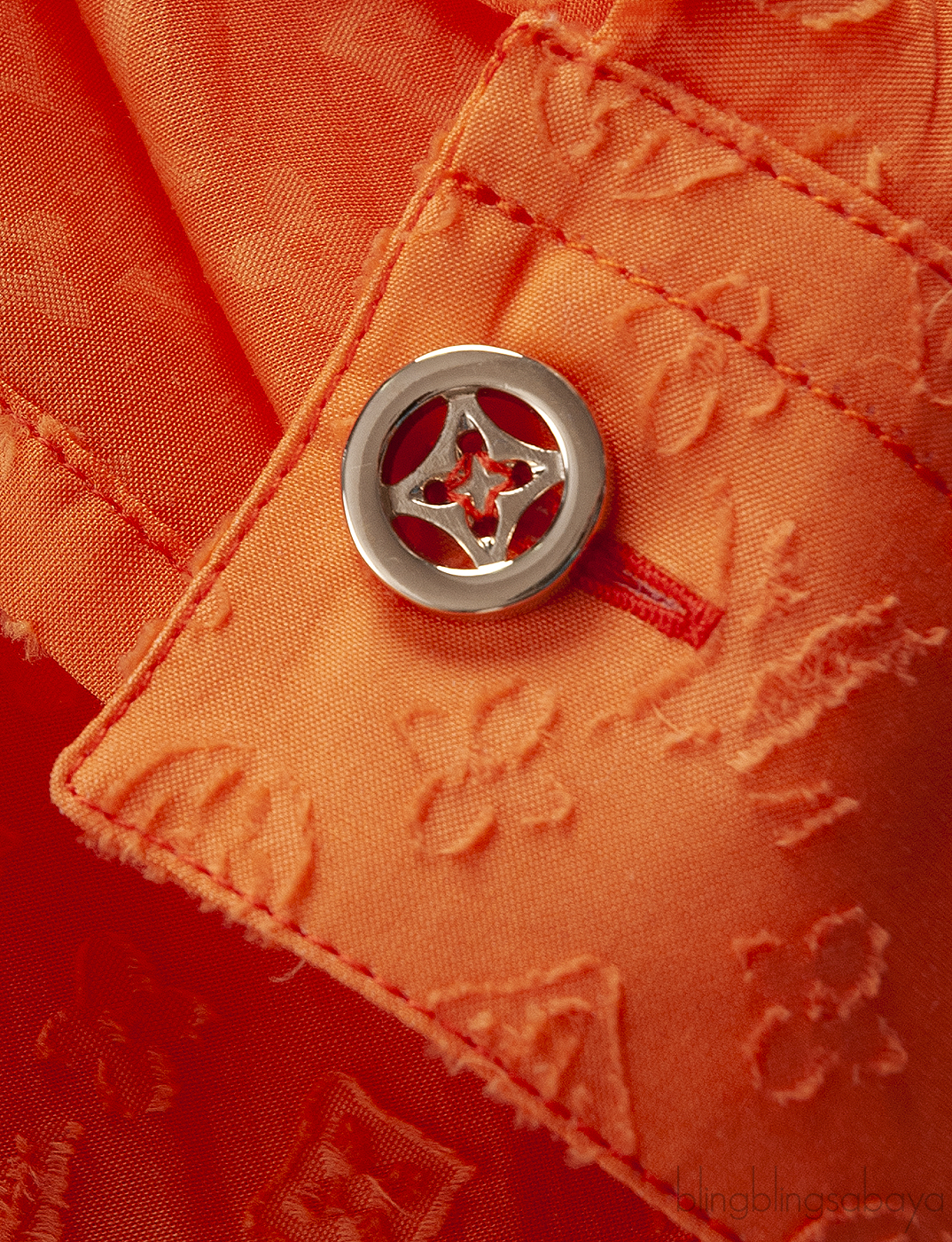 This Louis Vuitton Fil Coupe Orange Shirt Belted Dress crafted from vibrant orange monogram fabric featuring a classic collar, button fastening through the front, long sleeves with buttoned cuffs, mid-length hem and comes with wide detachable fabric belt.