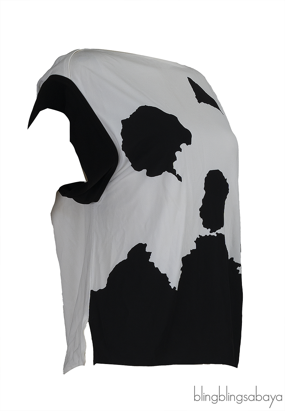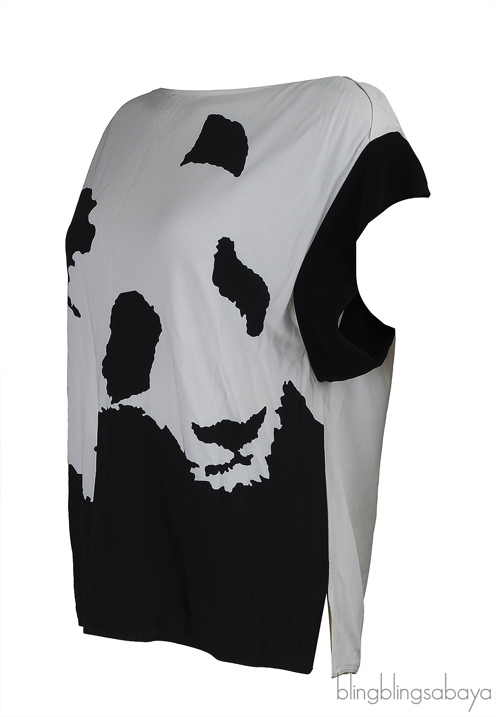 This Louis Vuitton Panda Print Blouse is crafted from 100% Viscose fabric in white and black hue. This top features a bateau neckline, pull-over, short sleeves, panda print at front and button fastening at rear.