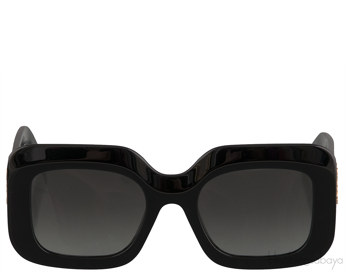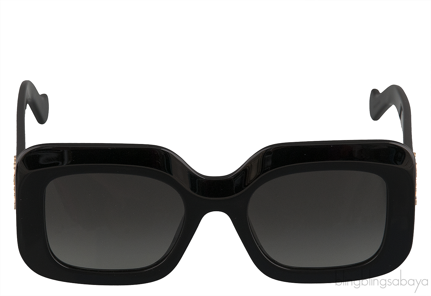 This LW40035I 01B Sunglasses from Loewe is crafted in black glossy acetate featuring faceted edges , oversize design with gradient grey lenses, metallic LOEWE anagram motif on the arms.