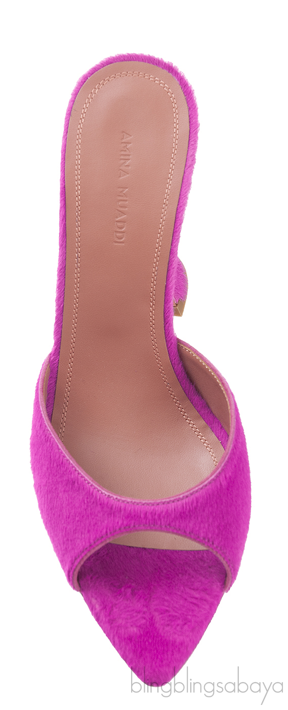 Amina Muaddi Magenta Pony Hair Caroline Sandals