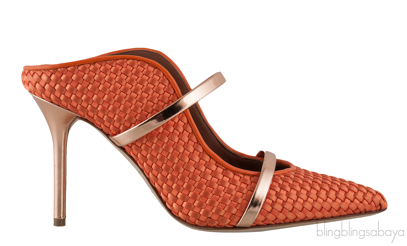 Maureen Orange Woven Satin Mules from Malone Souliers!