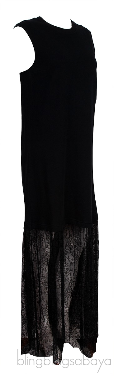 This Black Sleeveless Lace Trim Dress from from McQ Alexander McQueen is crafted from 100% Cotton and 100% Polyester in black. This dress features a round neckline, sleeveless, pull-over and lace trim.