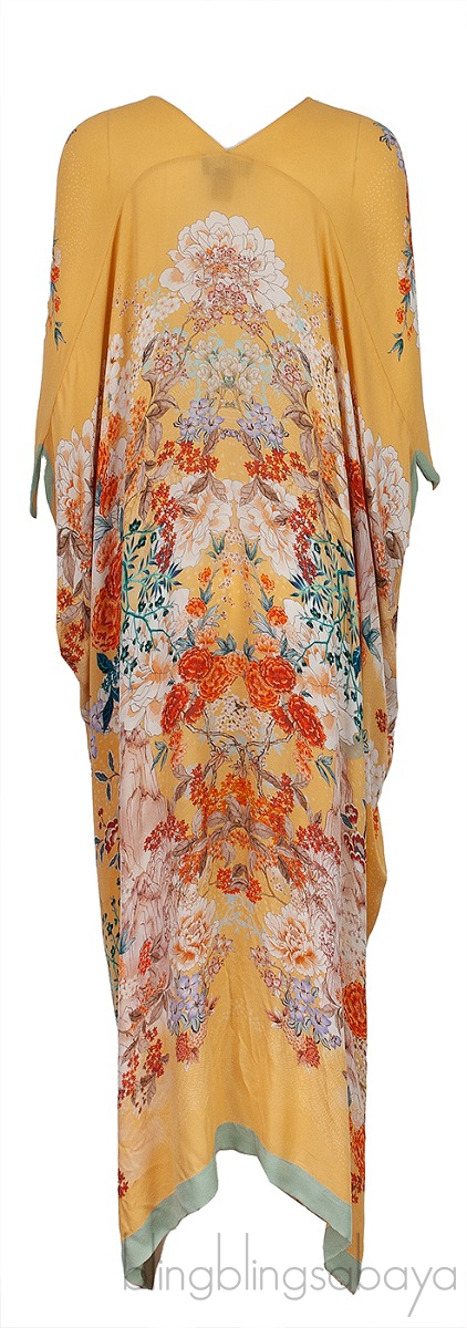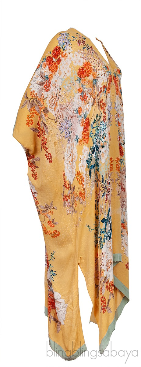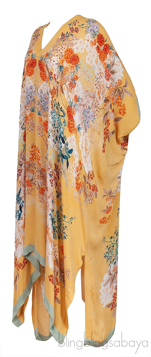 Yellow Floral Print Silk Kaftan Dress from Meng!