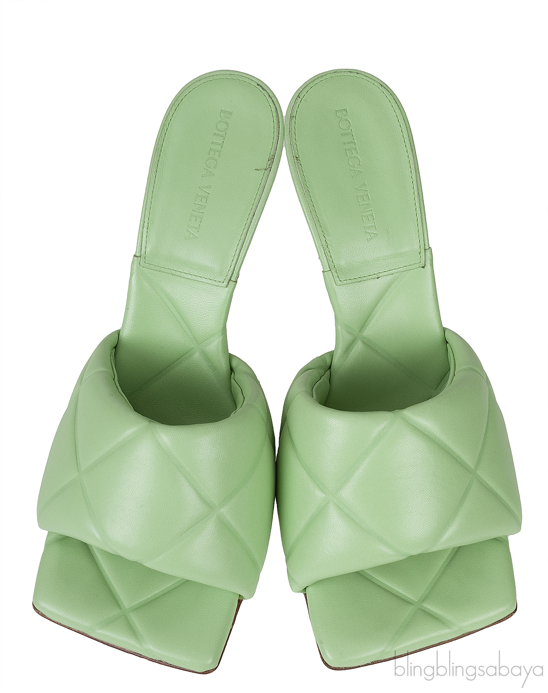Mint Green Nappa Quilted Lido Mule Sandals from BOTTEGA VENETA!