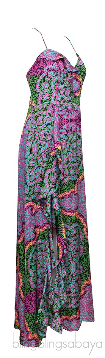 This Multicolor Sleeveless Ruffle Dress from Miss Bikini is crafted from 100% Polyester. This dress features a multicolor print all-over, sweetheart neckline, shoulder strap, ruffle detailing at front, long slit on one side and zip fastening at rear.