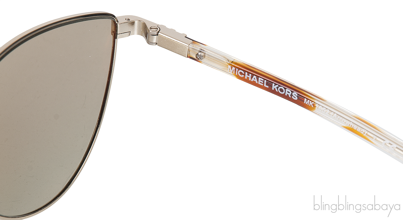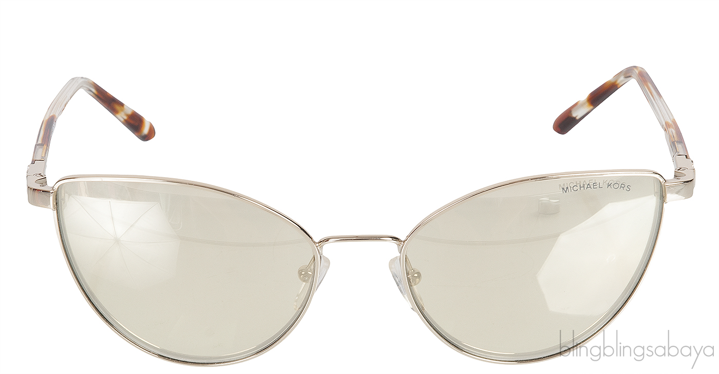 This MK1052 Arrowhead Sunglasses from Michael Kors features a sleek cat-eye light gold frame with old lenses, nose pads and acetate hands.