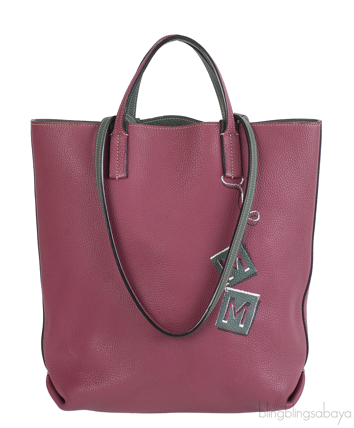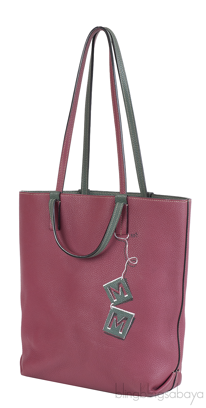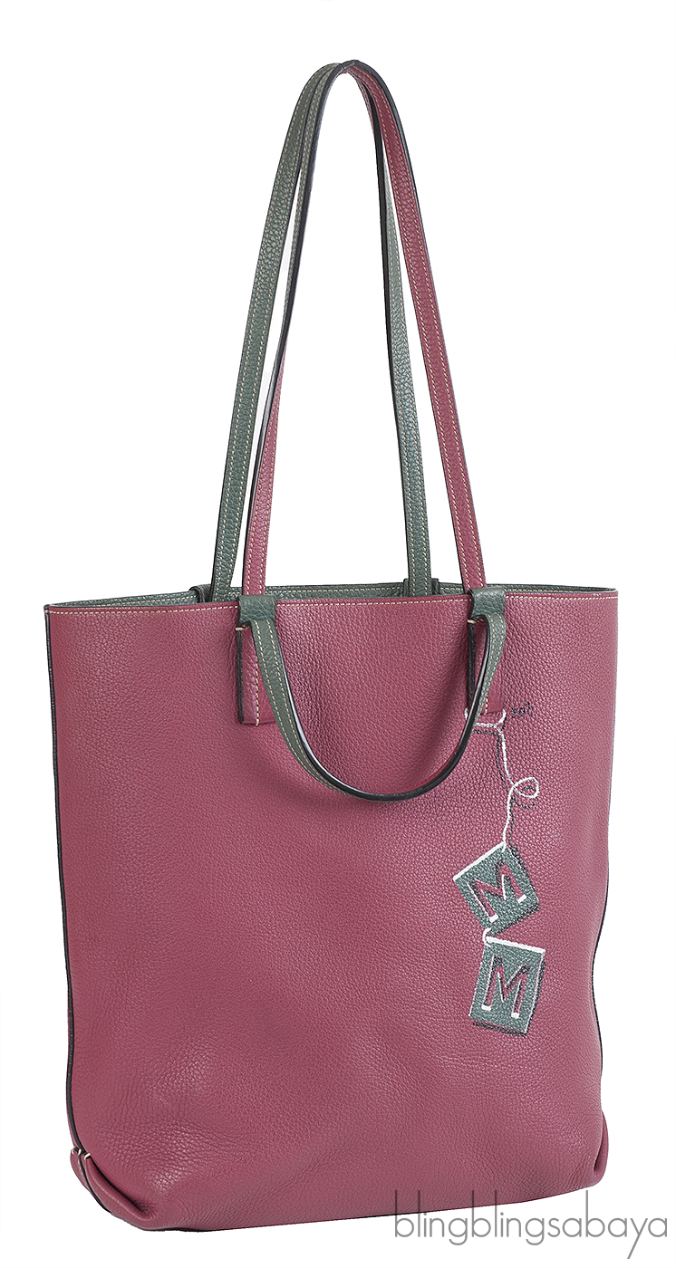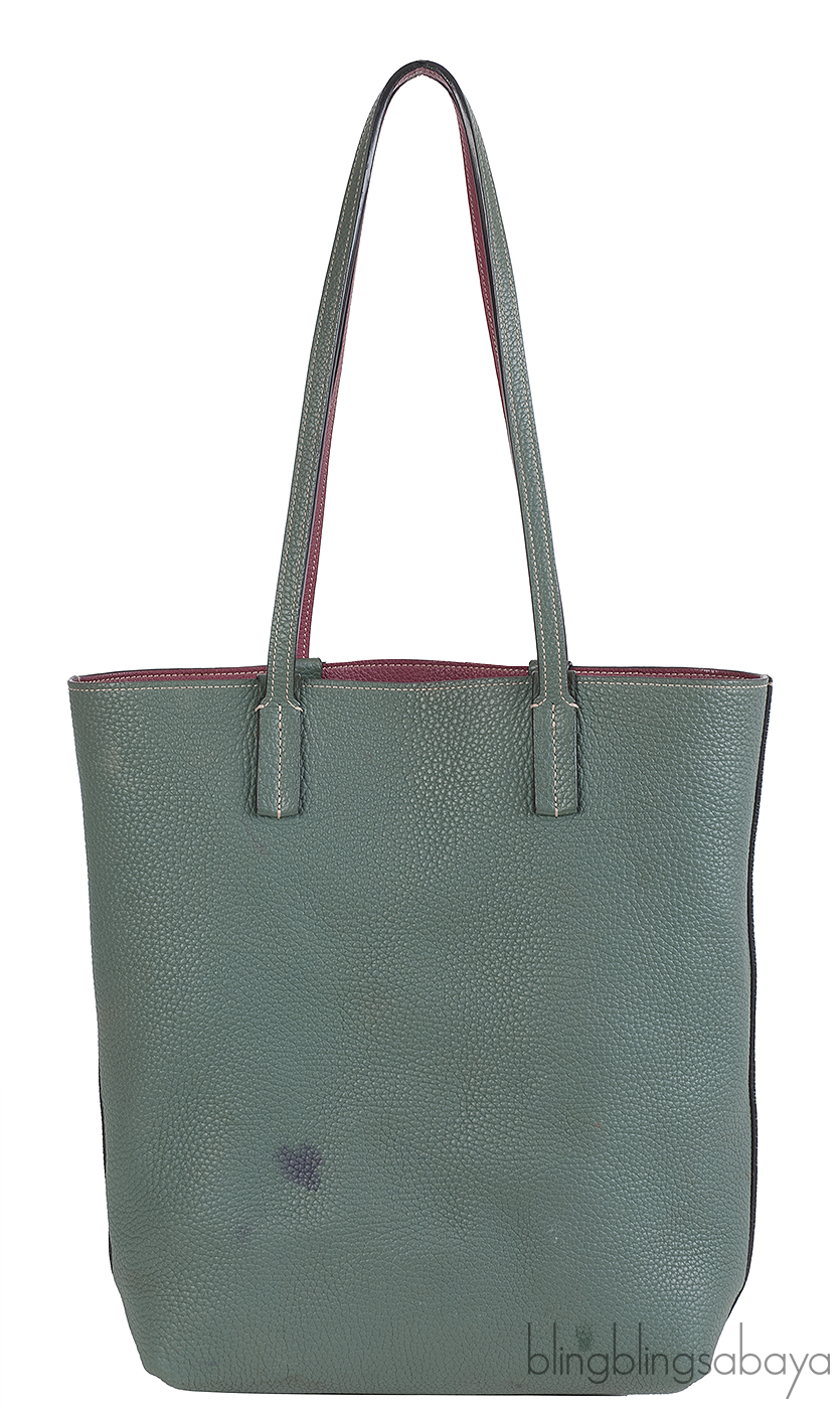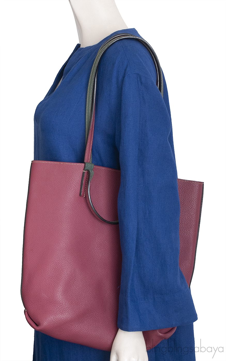 This Quattro Reversible Bi-color Leather Tote from Moynat is crafted from Taurillon Gex leather in bi-color hue. Featuring a burgundy tote with dark green hue in reverse with two optional straps for shoulder or hand carry.