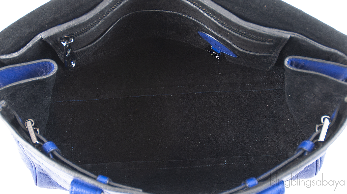 This stunning piece features two leather handles and a turn lock fastening at the front. It has the flap closure that opens to reveal the interior lined with black leather with internal zip pocket, two pouch pockets and has adjustable buckle on both side for more spacious interior.