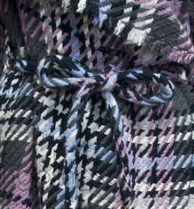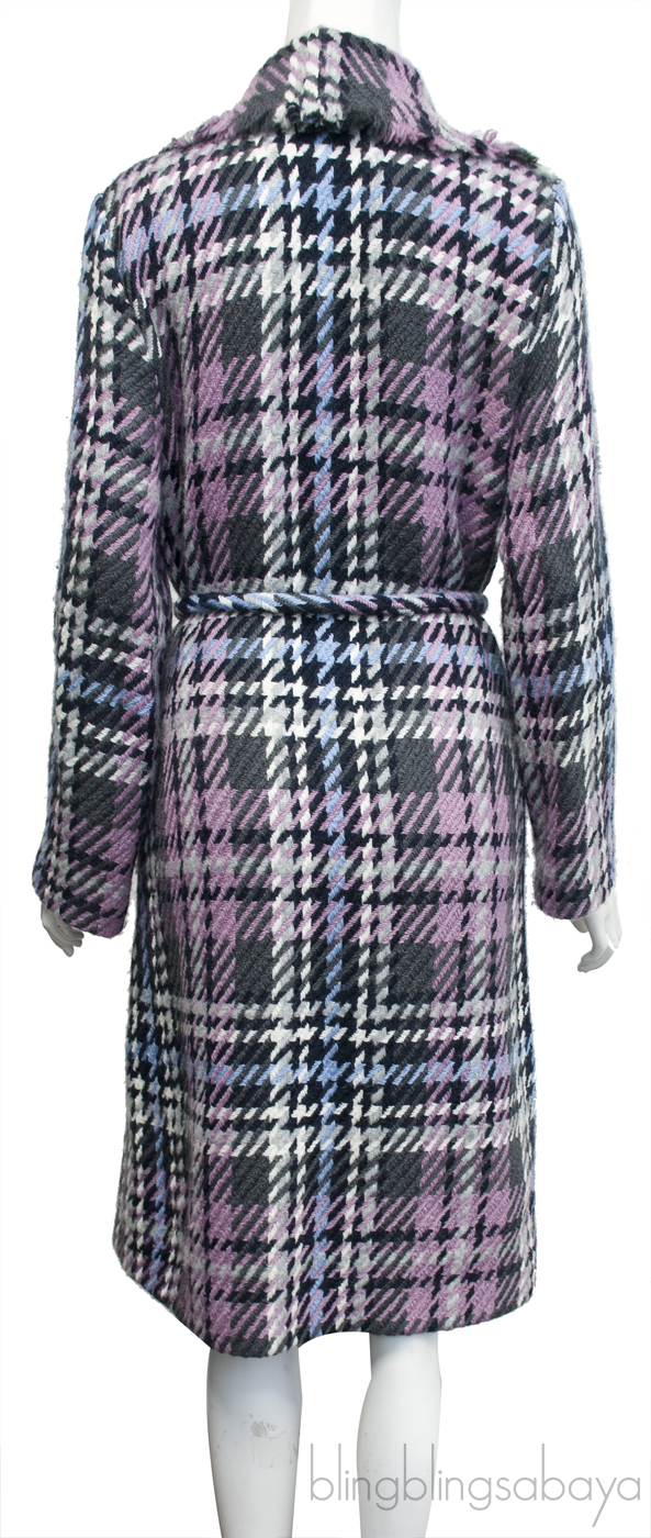 This Multi-color Knitted Coat from Carolina Herrera features a multi-colored knitted fabric with checkered motif. Featuring a wide collar, long sleeves, snap fastening at front, belt at waist and fringed or raw edges.