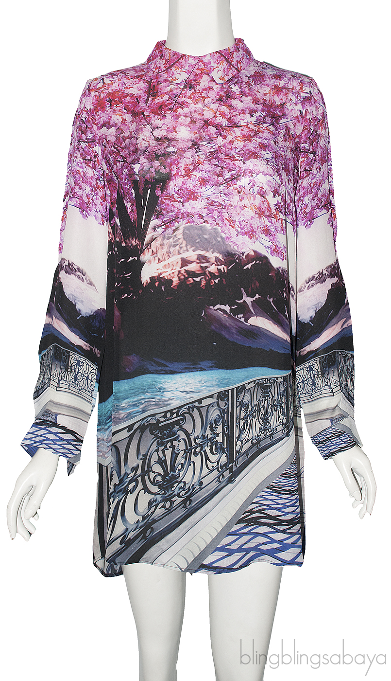 This Multi-color Tunic Dress from Mary Katrantzou is made of 100% Silk fabric in multi-color cherry blossom printing. This features a round neckline with collar, long sleeves with button cuffs, button fastening at neck and mini length.