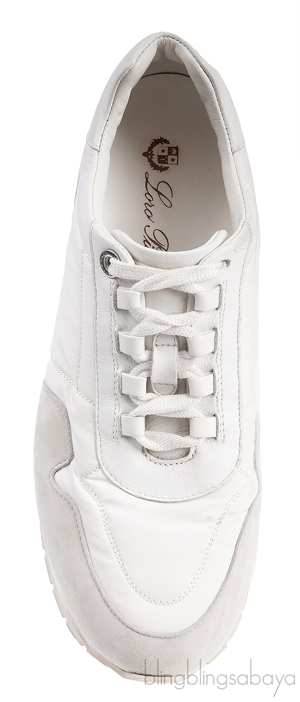 Loro Piana My Wind White Microfibre and Grey Suede Sneakers