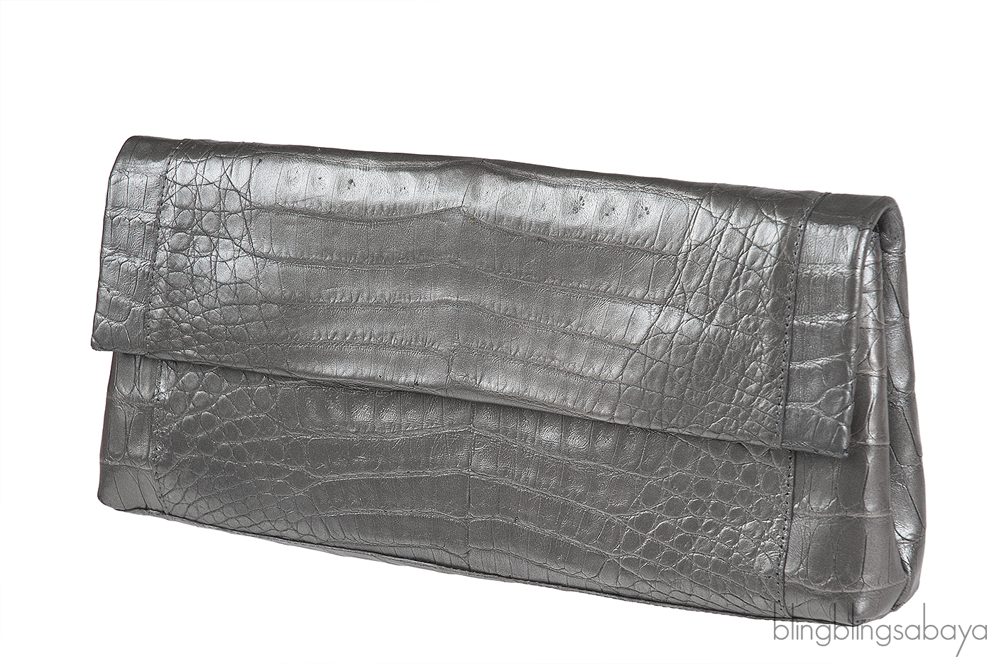 Grey Fold-Over Crocodile Clutch from Nancy Gonzalez!