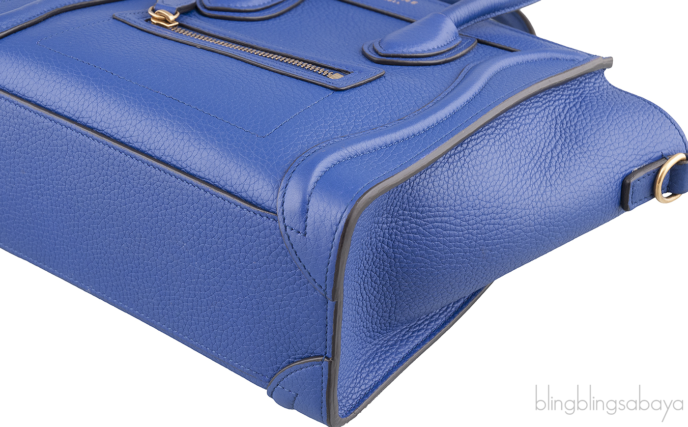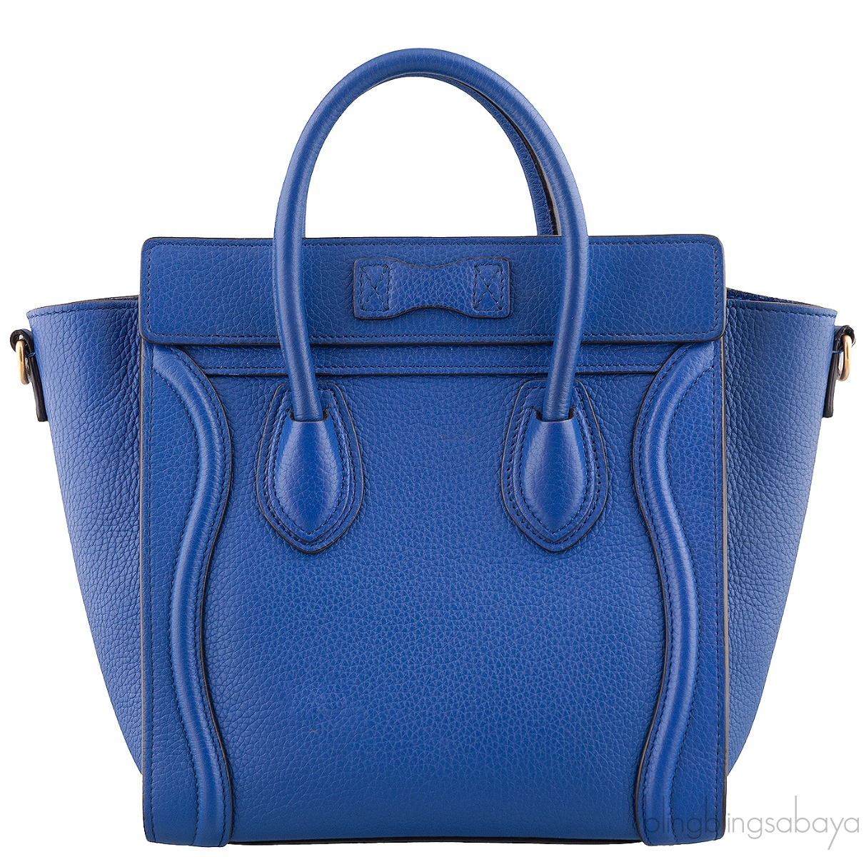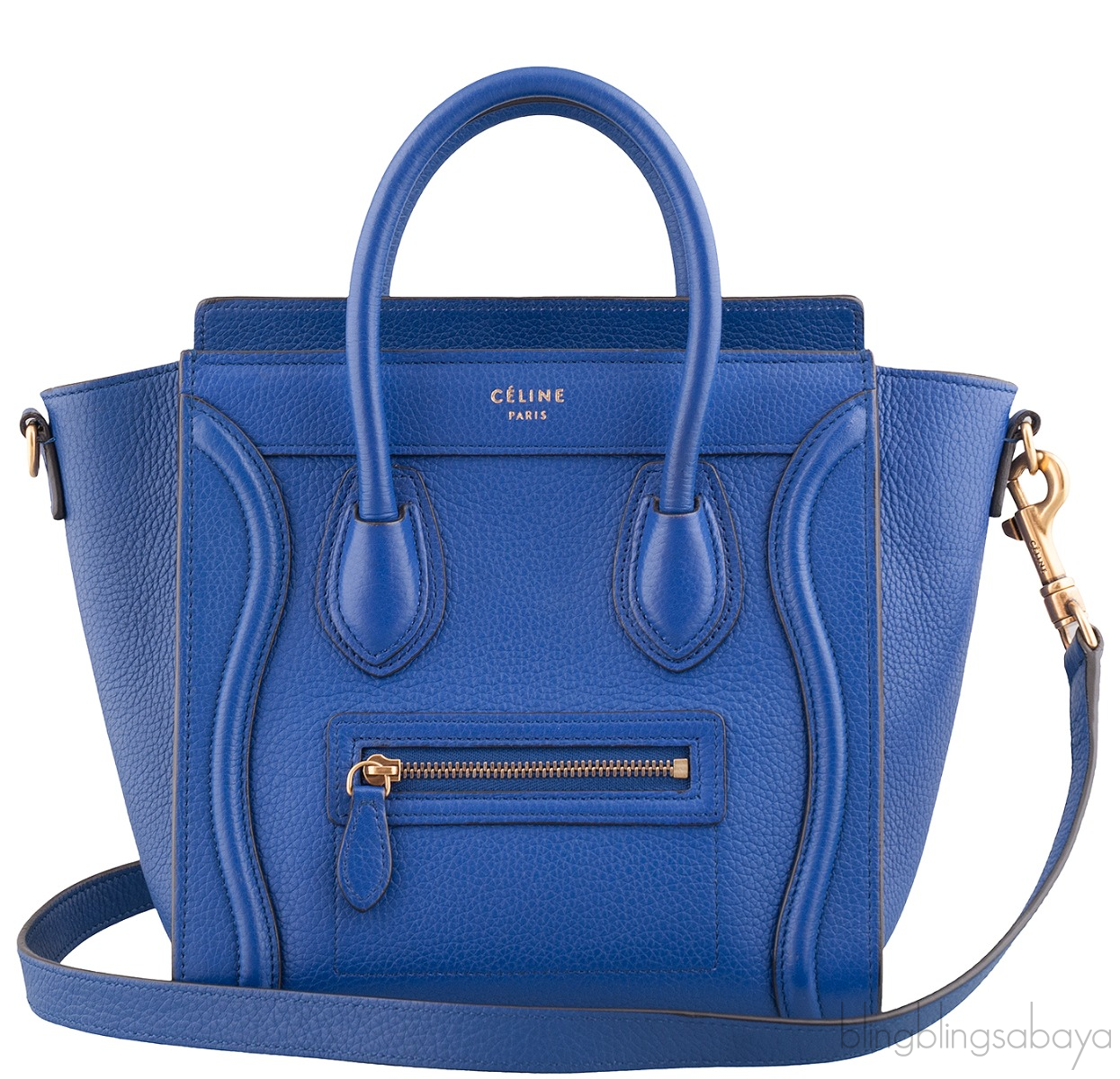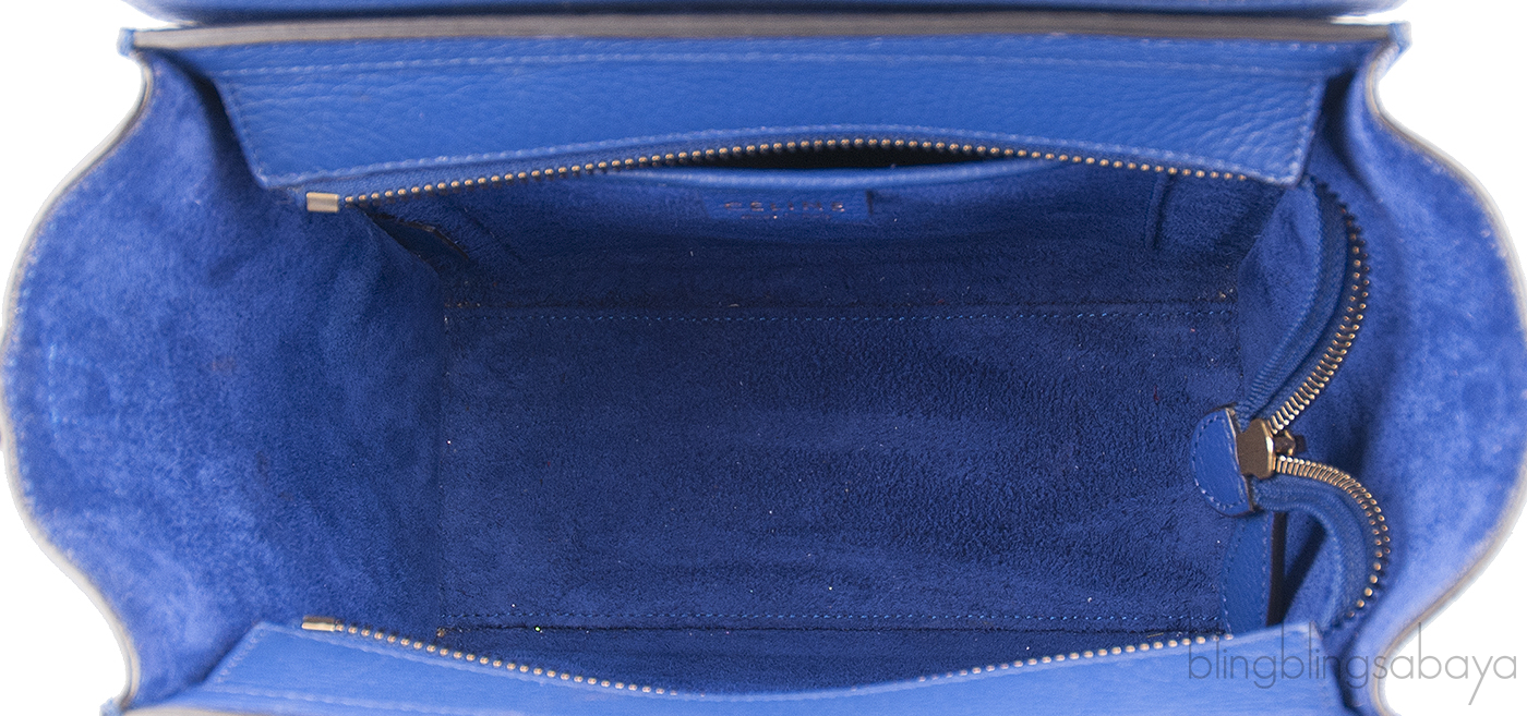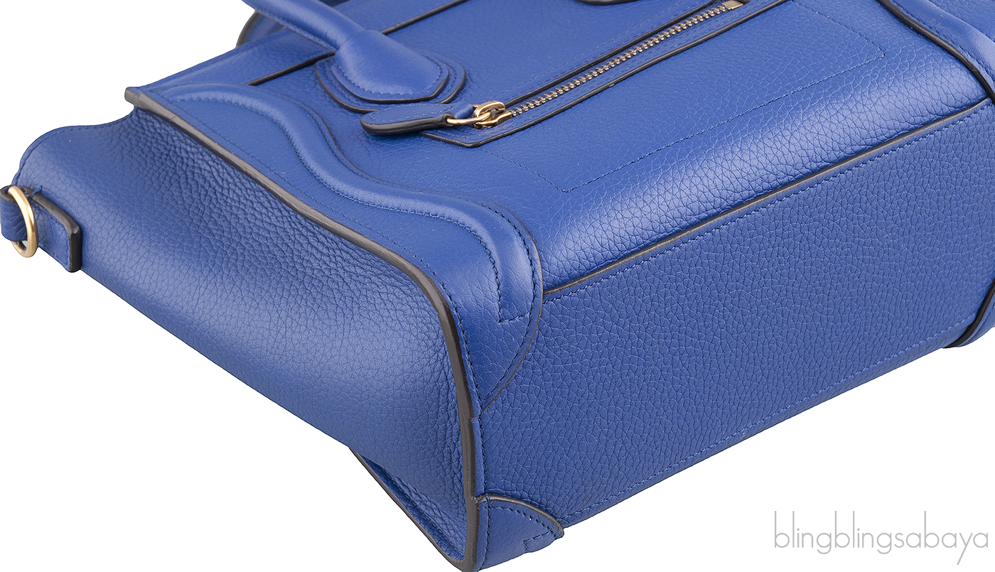 Add a dash of color to your wardrobe with this Nano Luggage Blue color from Celine. Crafted in eye catching blue grainy leather with a Gold Hardware. It has a vertical ridge on both sides that adds a stunning characteristic and has frontal zip.
