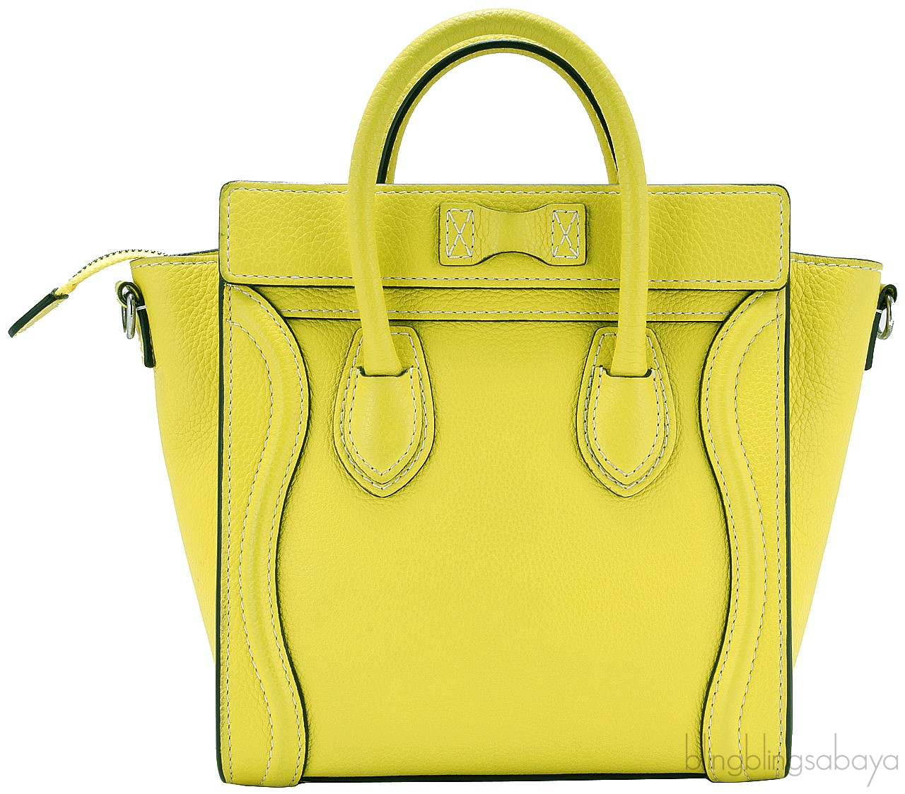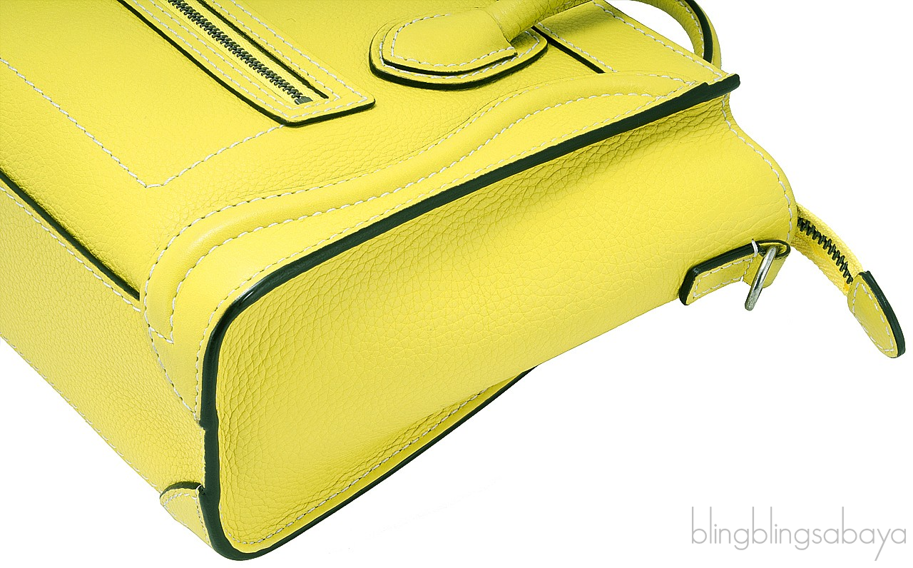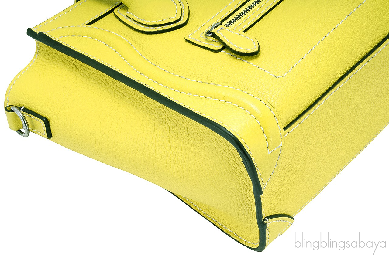 Add a dash of color to your wardrobe with this Nano Luggage Citron Lemon. Crafted in eye catching Citron Yellow Calfskin leather with a Silver Hardware. It has a vertical ridge on both sides that adds a stunning characteristic on front and rear of this lovely bag.