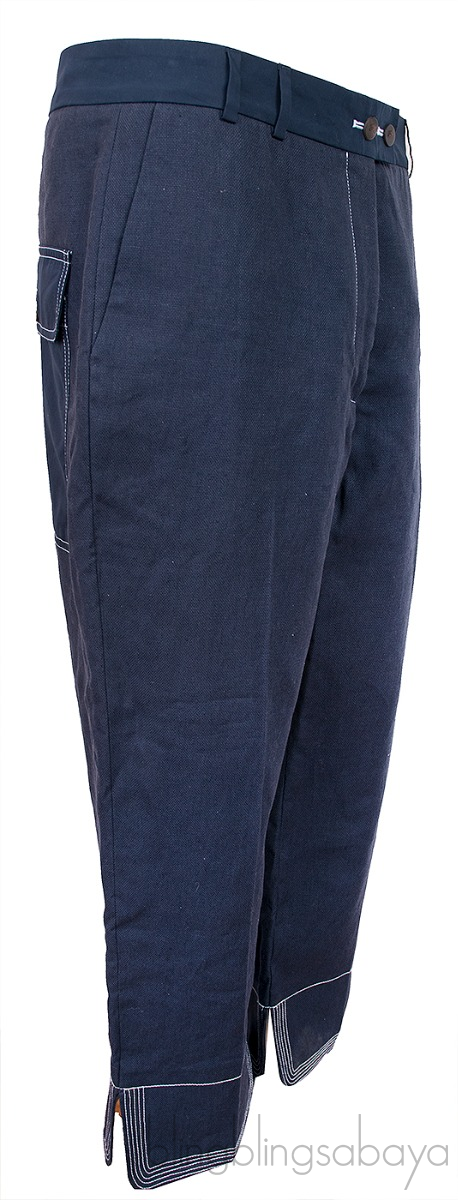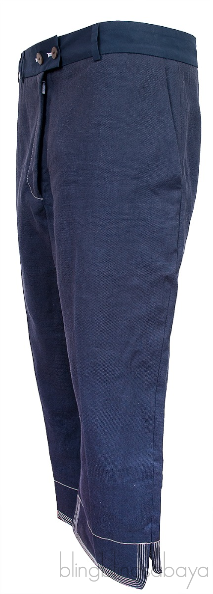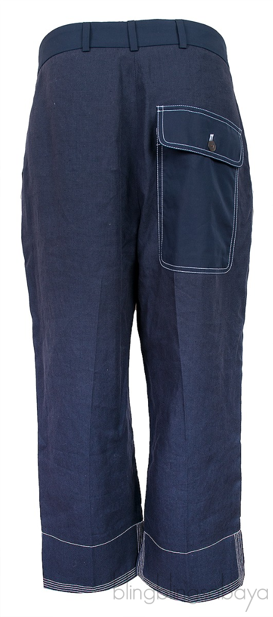 This Navy Blue Cropped Trouser from Loewe is crafted from 86% Linen and 14% Cotton in navy blue hue. This trouser features a belt loops, zip and button fastening at front, side pockets and patch pocket at rear, crop length.