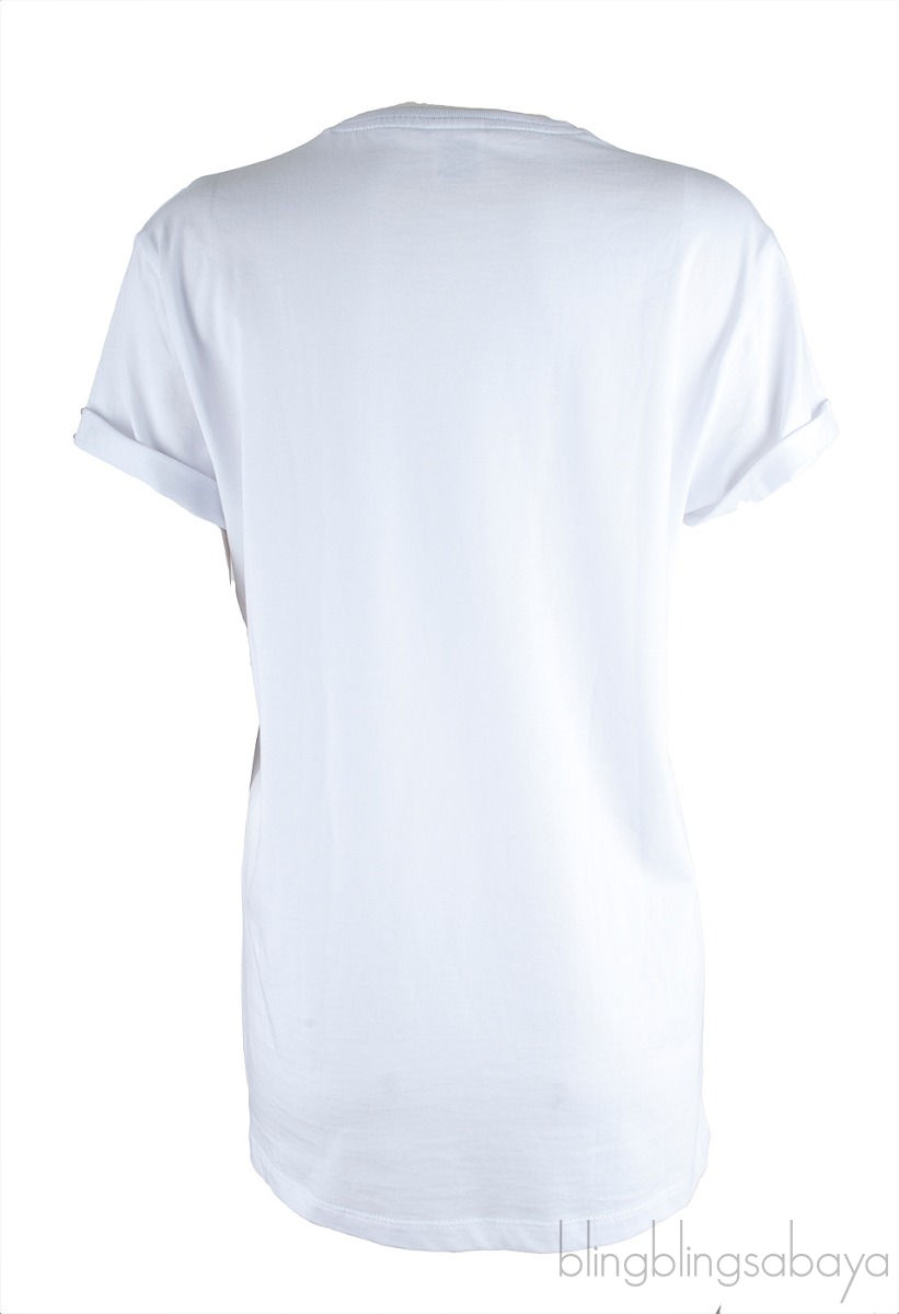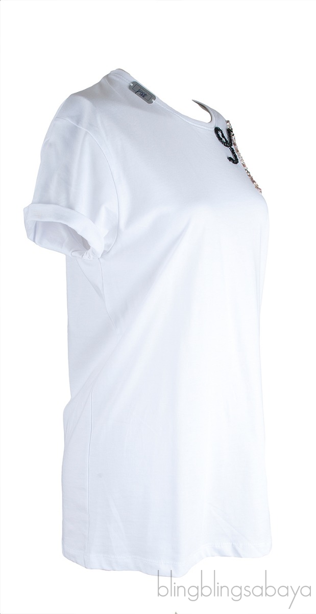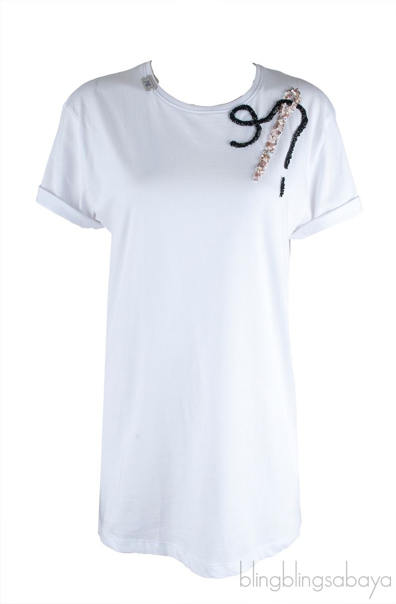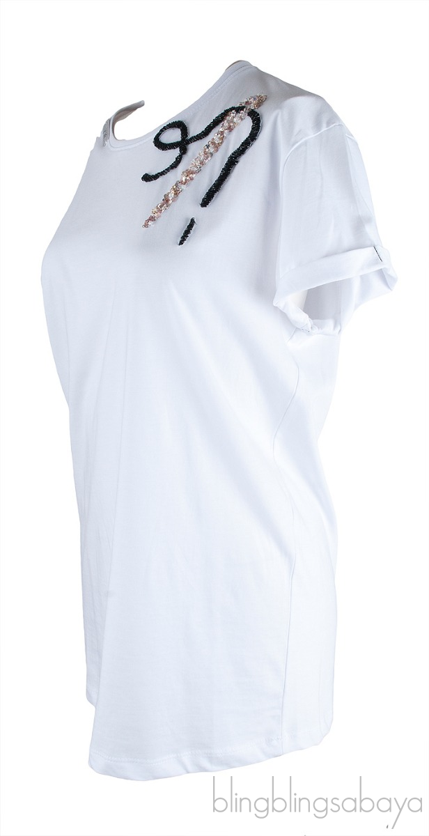 This Needle & Thread T-shirt from Joce Line is crafted from 100% Cotton fabric in white or black color in unisex fit. This comfortable T-shirt features a round neckline, short sleeves and a needle and thread motif fully embellished with sequin and beads in black, white and gold hue.