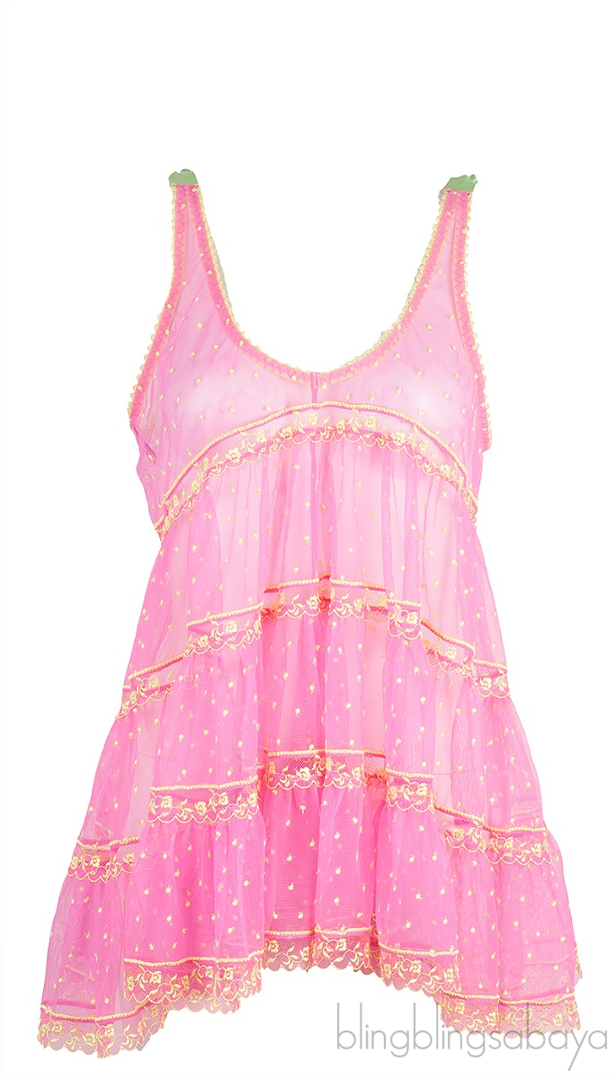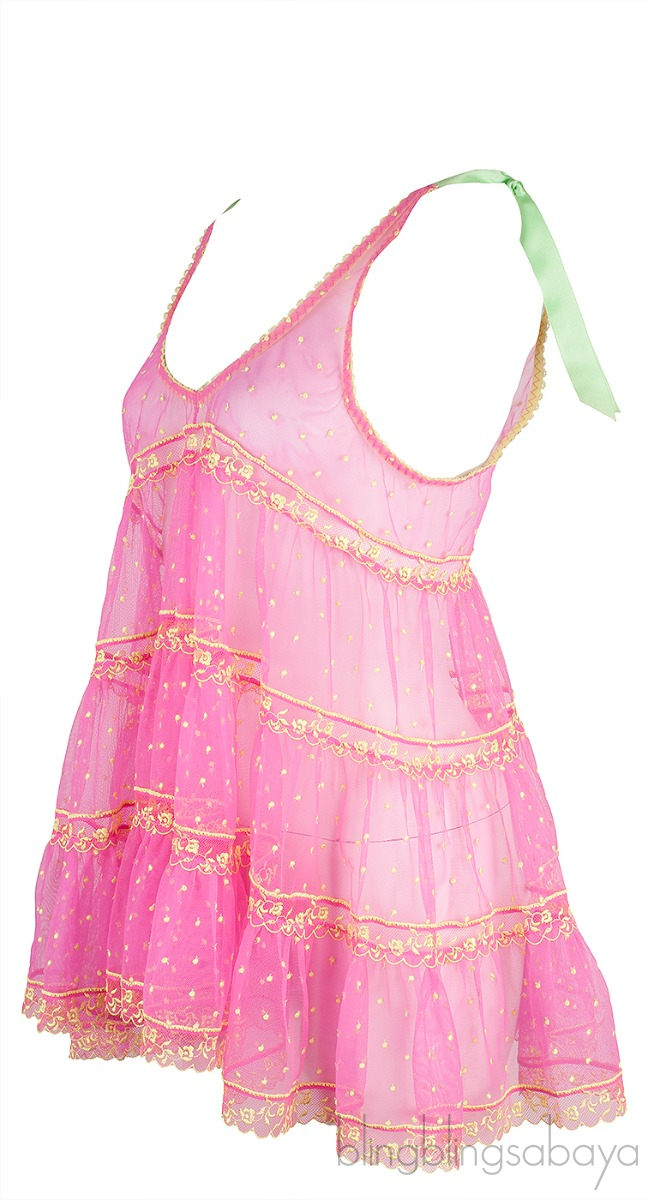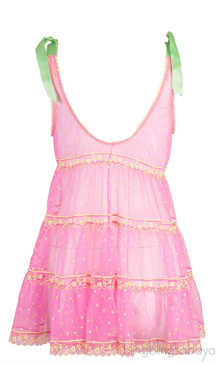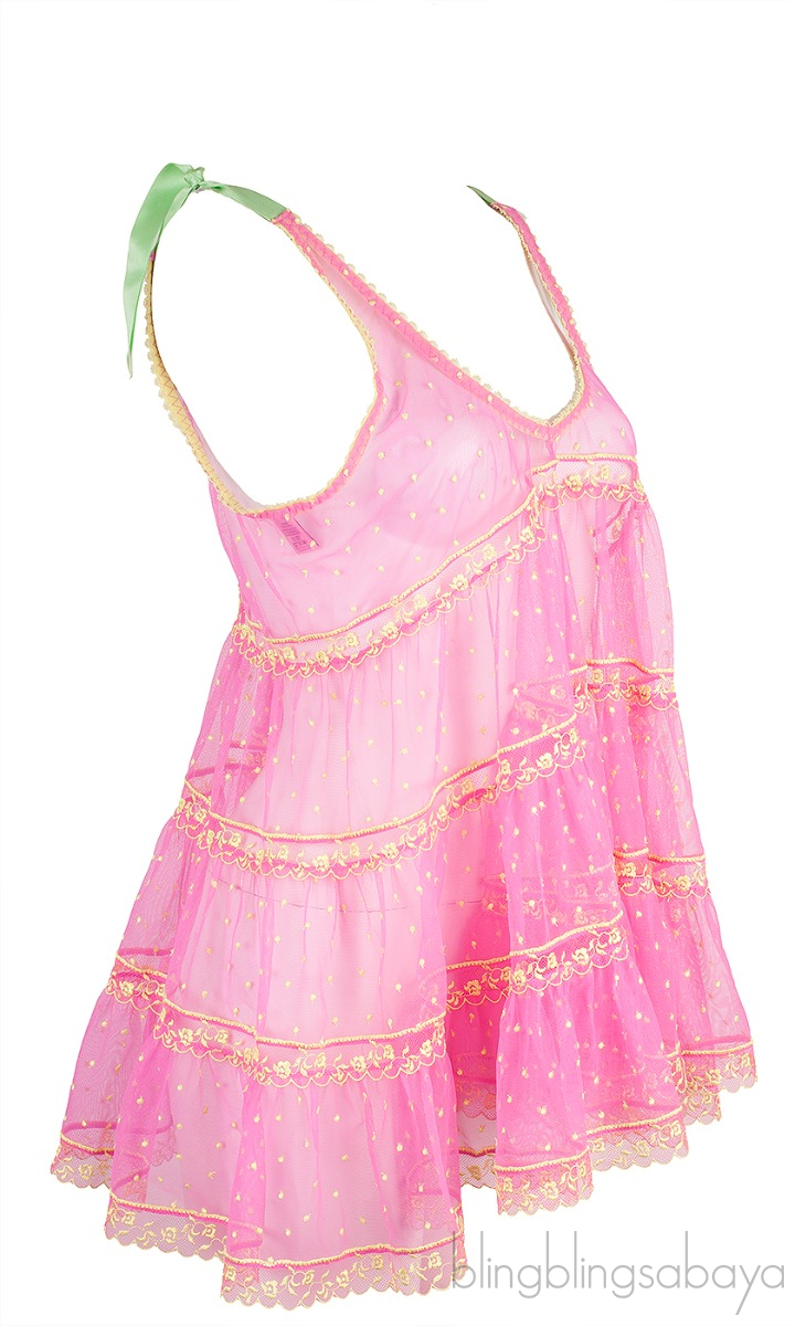 This Neon Pink & Green Camisole from Agent Provocateur is made of 84% Polyamide & 16% Polyester in neon pink mesh fabric with neon green floral embroidery accent featuring a scoop neckline, scallop edges and neon green silk satin shoulder strap.