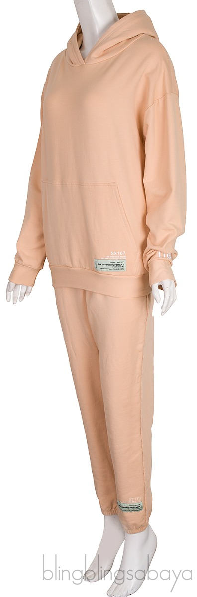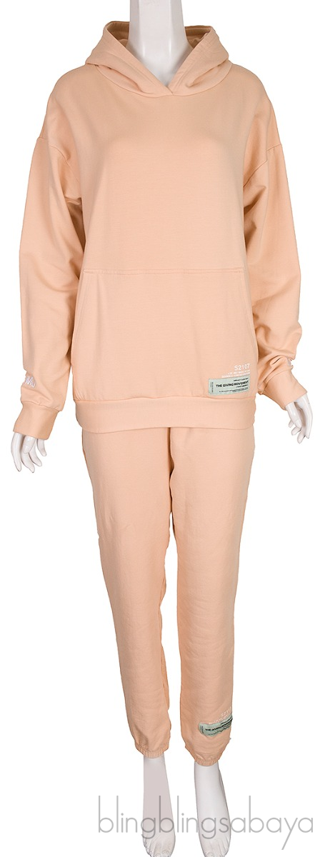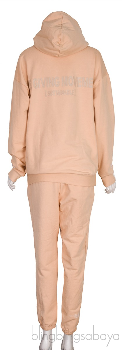 This pair of Nude Hoodie & trouser from The Giving Movement is originally crafted from the UAE for a great purpose. Made of 95% Organic bamboo and 5% Spandex in nude hue. Top features a hoodie style, long sleeves, pocket at front and has the brand logo2 stitched at front near the hemline.