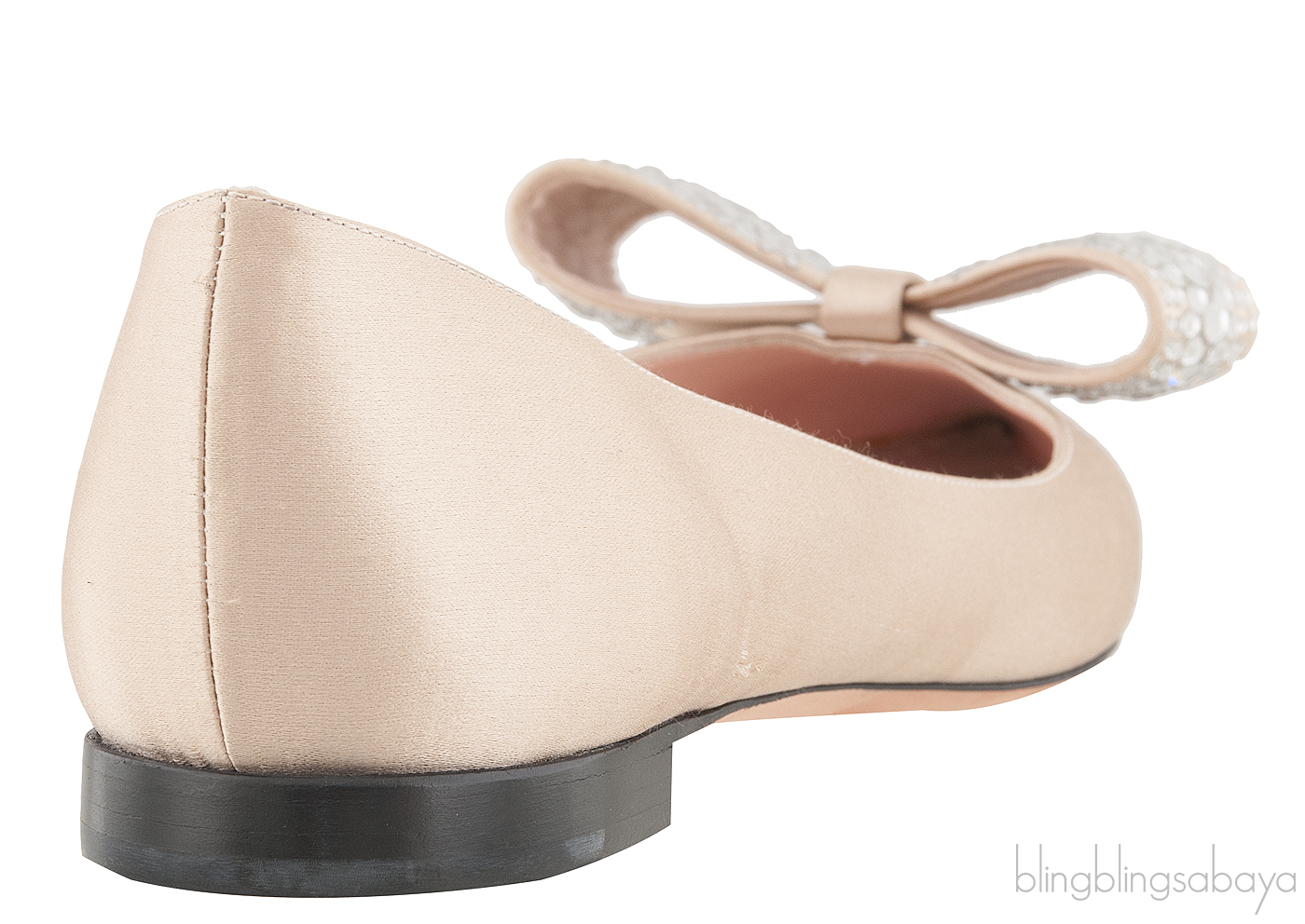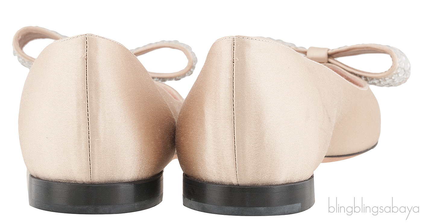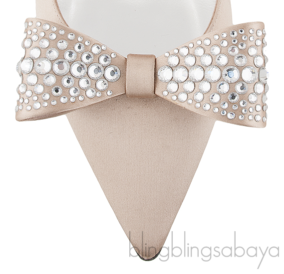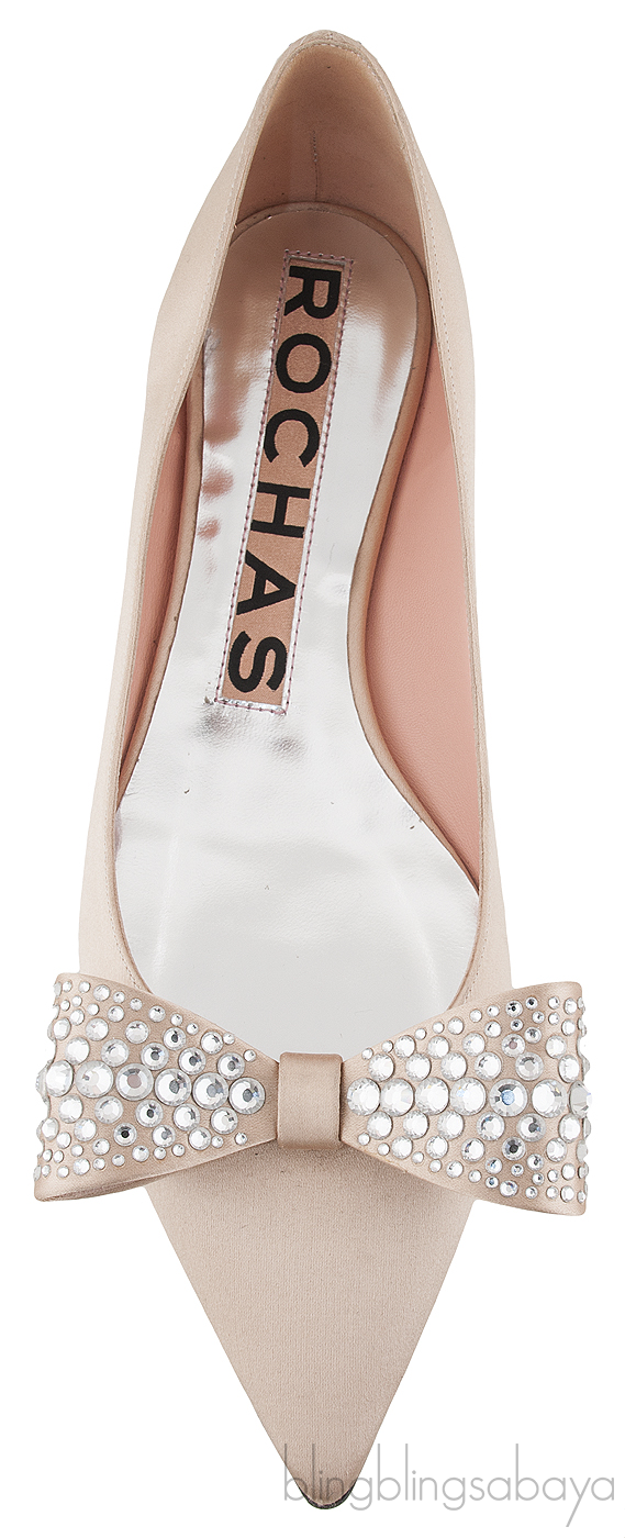 This Nude Pointed Toe Bow Flat from Rochas are made of nude satin fabric upper featuring a huge bow detailing at vamp encrusted with crystals, pointed toe, sliver leather lining and leather lined sole.