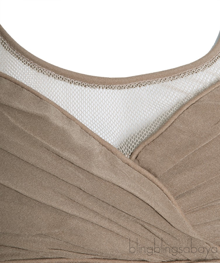 This simple yet elegant dress from Burberry features a netted strap and neckline, pleated heart design, empire waistline, slightly pleated flowing fully lined skirt and has concealed zip fastening on the side..