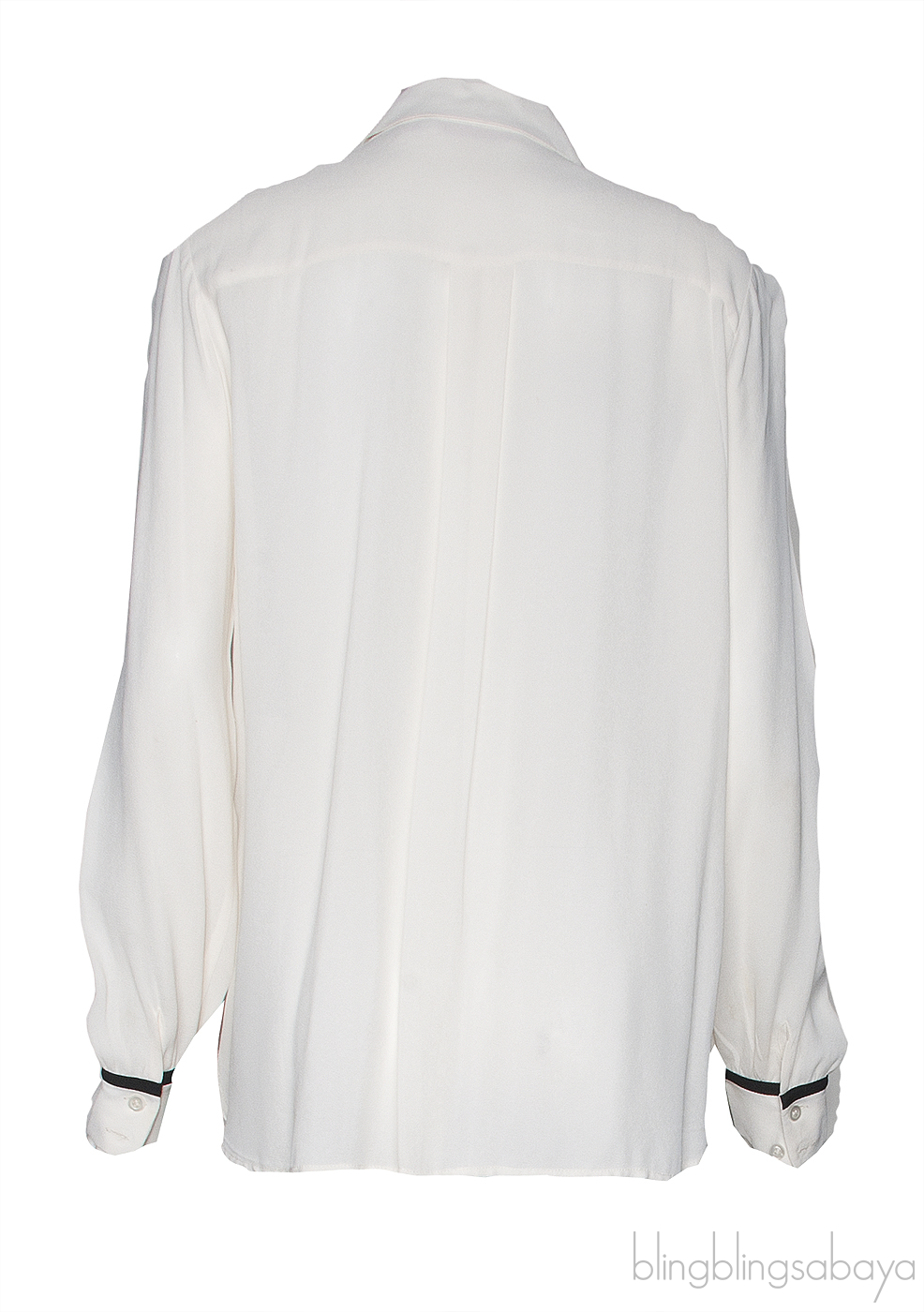 This Off-white Black Trim Long Sleeve Shirt from See by Chloe is crafted form 100% Viscose fabric in off-white color. This shirt features a classic collar, button fastening with pleats detailing to the front, long sleeves with black trim and buttoned cuffs.