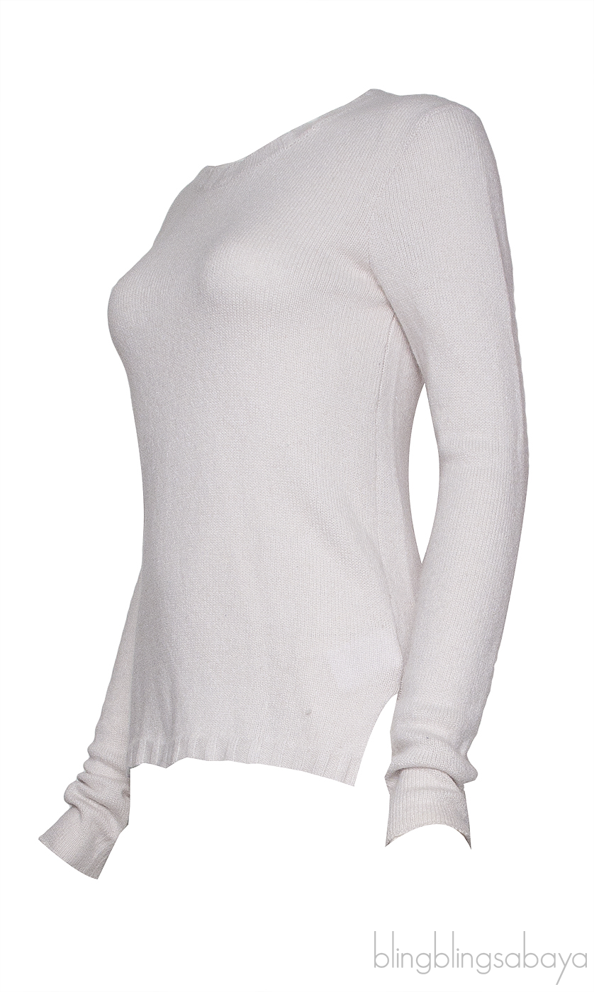 This Off-white Cashmere Top from James Perse is crafted from soft cashmere fabric in off-white hue. This top features a round neckline, long sleeves, pull-over and side slits on the side.