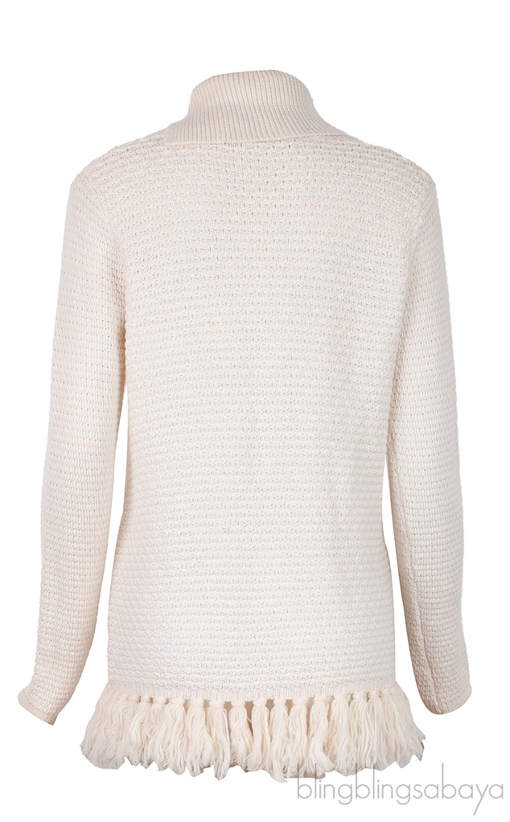 This Off-White Knitted Fringed Trim Sweater from Proenza Schouler is crafted from 51% Wool, 39% Cotton, & 10% Nylon. This sweater features a folded high neck, long sleeves, fringed hemline trim and slit at front. Pull-over!