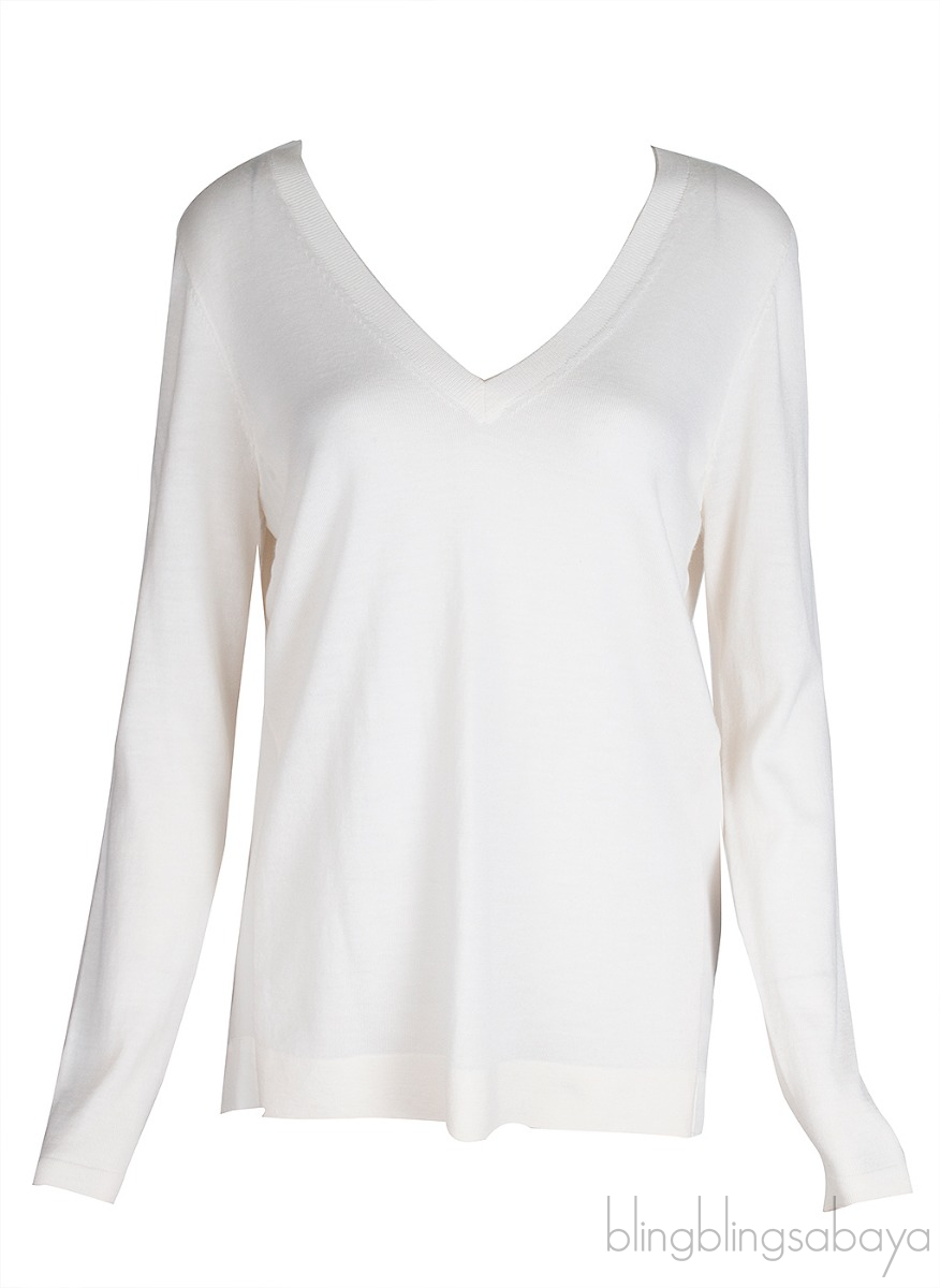 This Off-white Long Sleeve Sweatshirt from Reiss is crafted from 100% Wool fabric in off-white hue featuring a v-neckline, long sleeves and pull-over style.