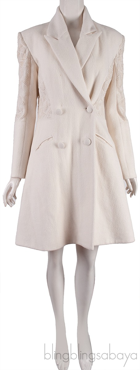 Off-white Wool Embroidered Coat