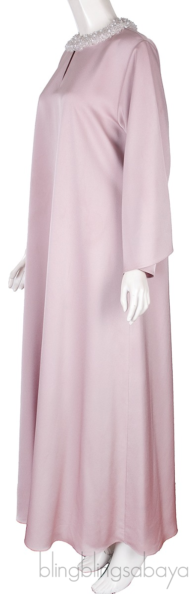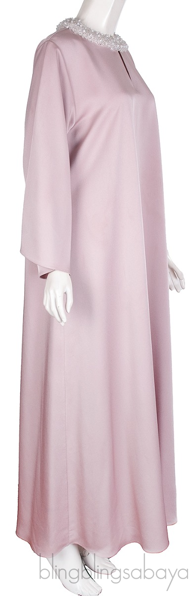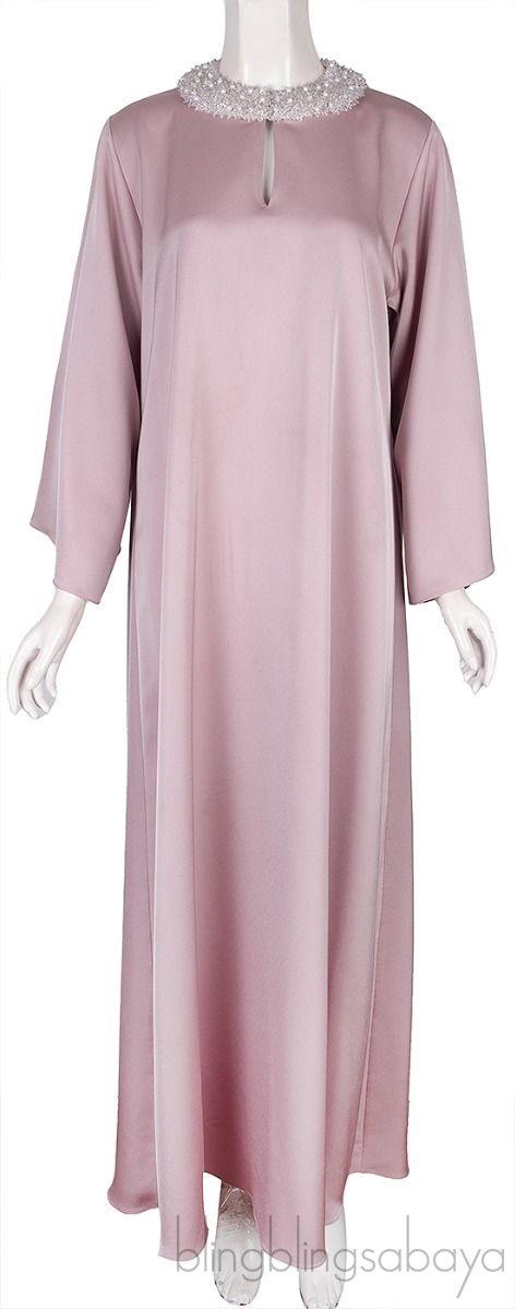 This Old Rose Bead Embellished Long Sleeve Dress from Shatha Essa is crafted from old rose plain fabric featuring a round neckline with bead, pearl and sequins embellishment, kimono sleeves, key hole at front, and pull-over style.