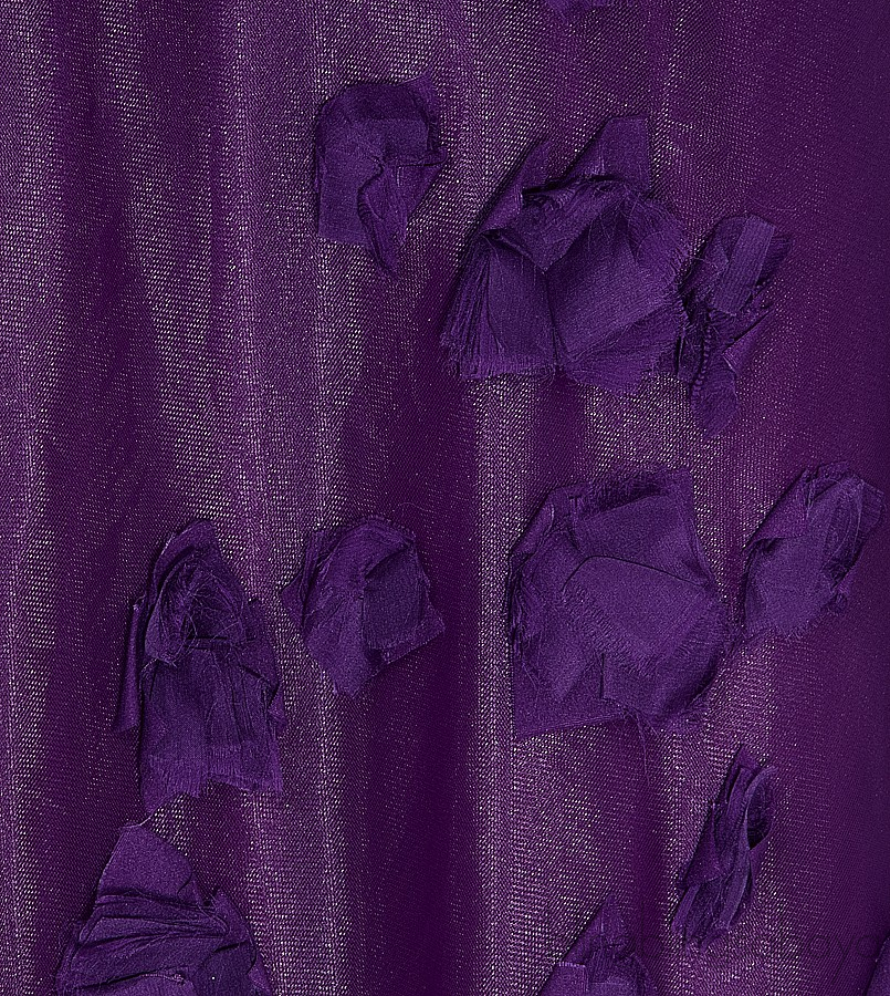This elegant floor length One shoulder Dress from Tadashi Shoji is made from 100% polyester fabric & 100% Silk lining. It has assymetrical neckline with concealed zip and hook fastening at the side and a skirt and shoulder adorned with strips of organza that create a floral-like effect. (measurements are approximate)