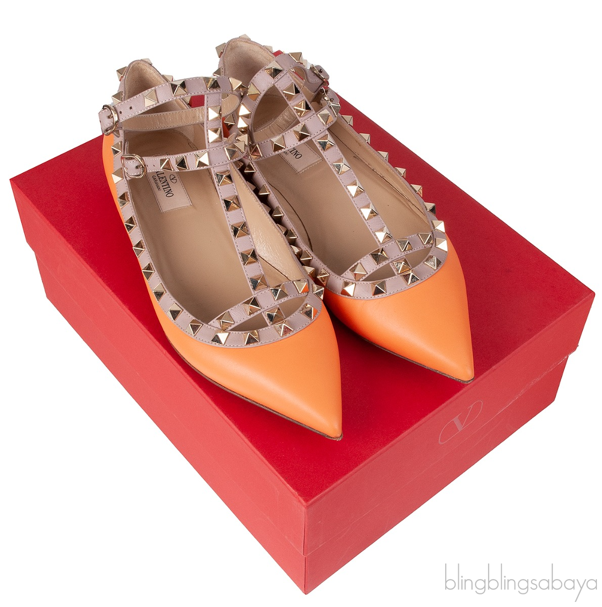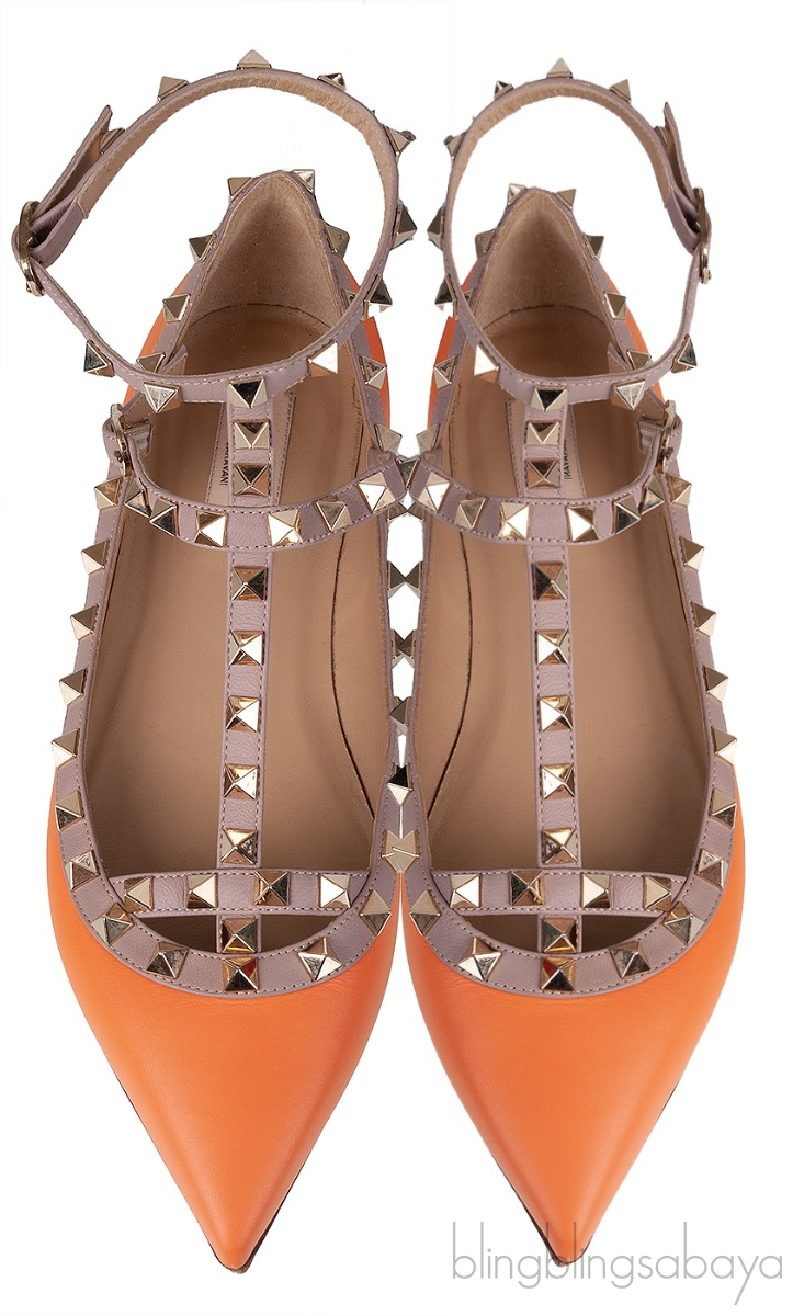 Orange Matte Rockstud Flat Ballerina from Valentino!