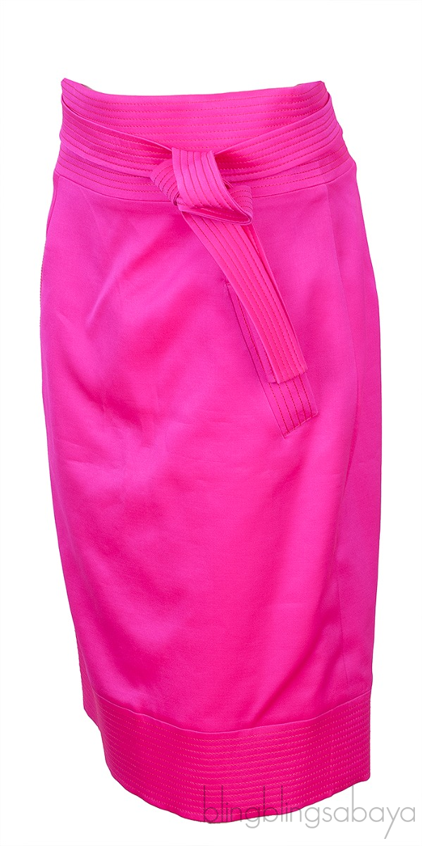 This eye-catching ultra feminine Neon Pink Skirt from Oscar dela Renta is made of 66% Wool, 40% Silk and 4% elastane Fabric. This skirt features an A-line cut design, knee-length hem, two slide frontal pockets, hook and zip fastening, non-detachable belt and slit at rear.