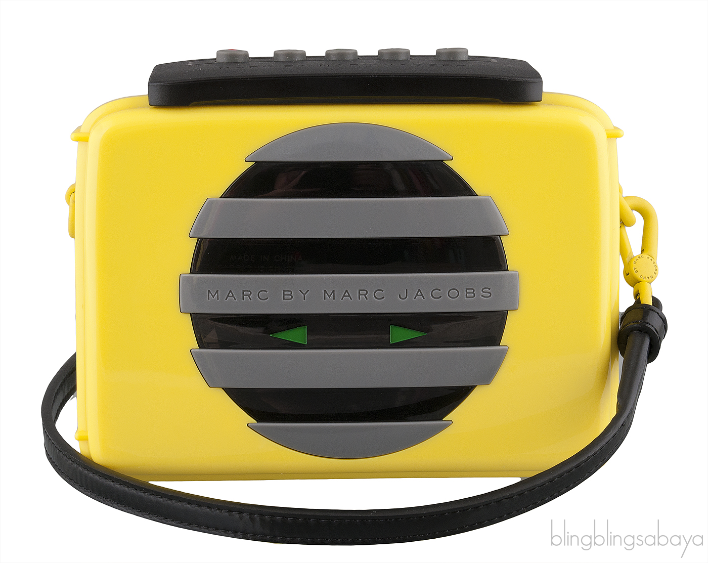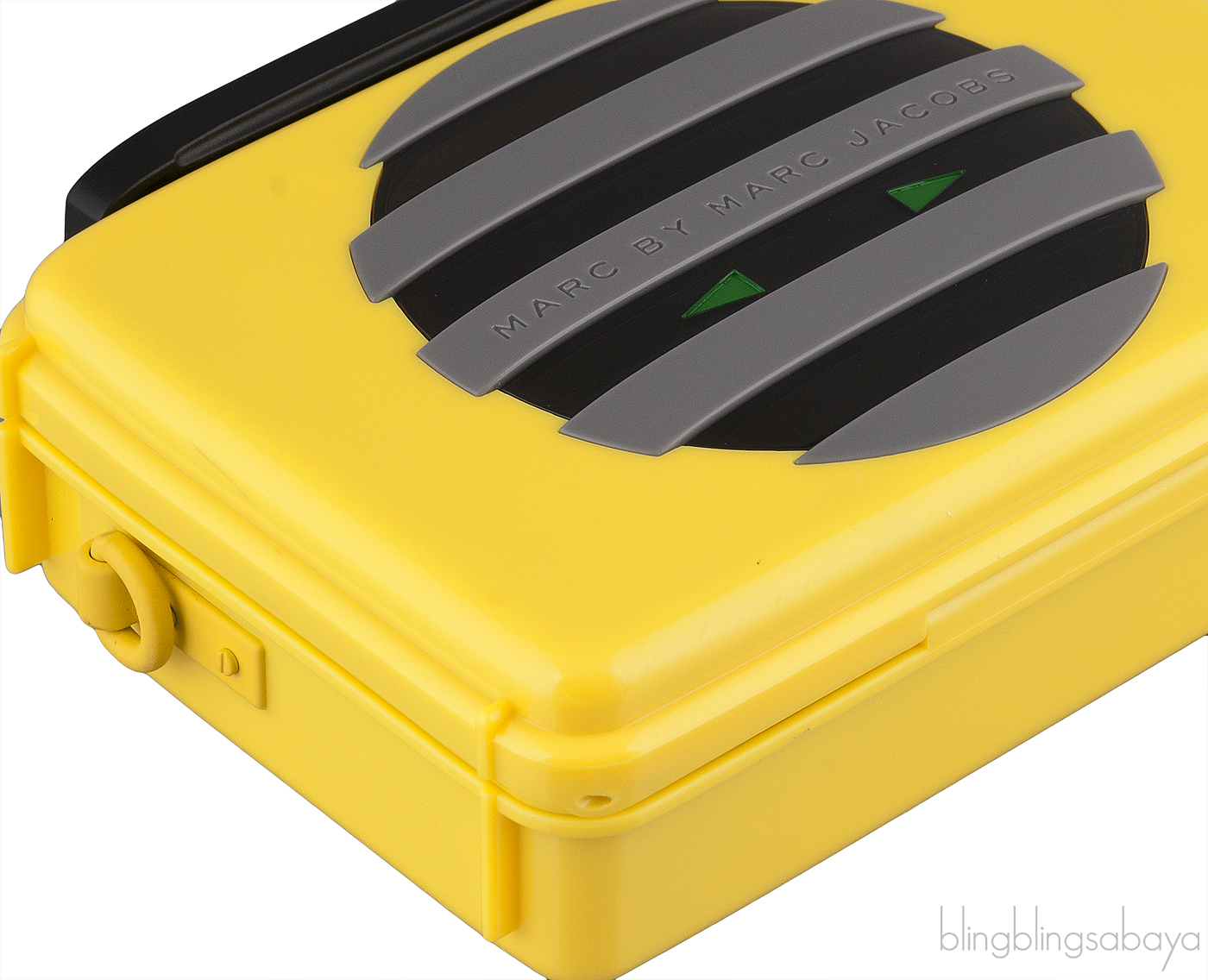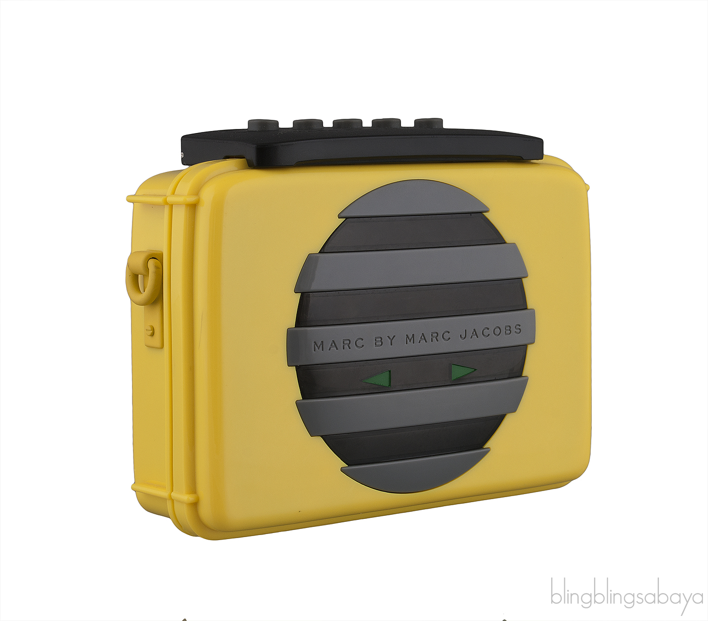 This cute and playful Out-Loud Hard Case Cassette Clutch from Marc by Marc Jacobs is crafted from bright yellow hard case designed as a retro cassette recorder completed with authentic-looking control buttons. Fitted with a small opening at the side to insert your headphone jack, this cross body-slash-clutch is perfect for listening to tunes on-the-go. The soft neoprene lining will keep your gadgets well protected, be it your phone or mp3 player.