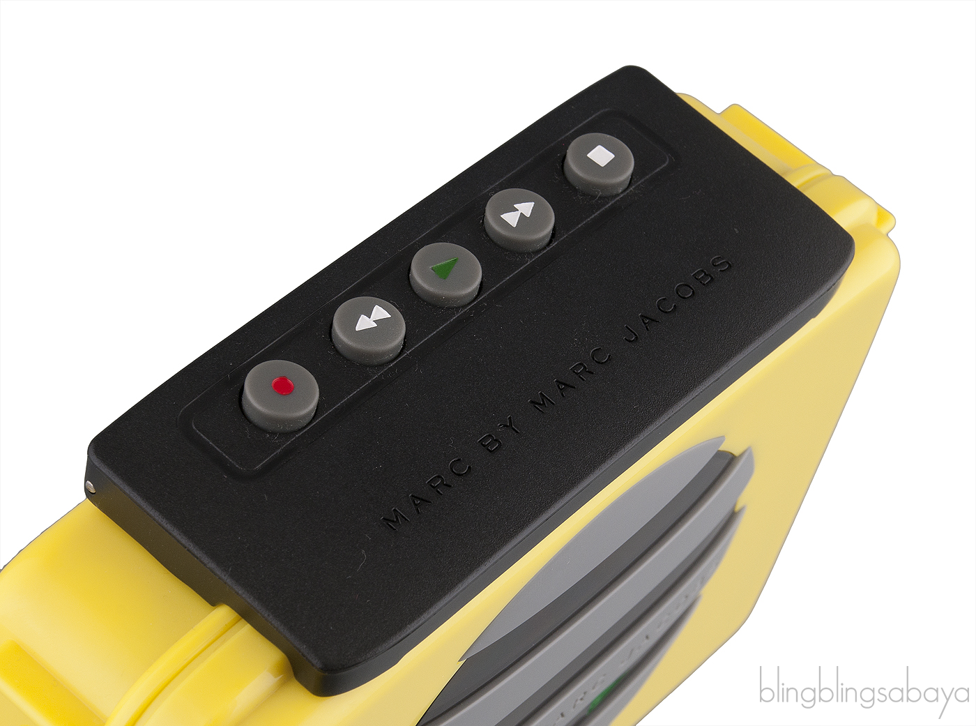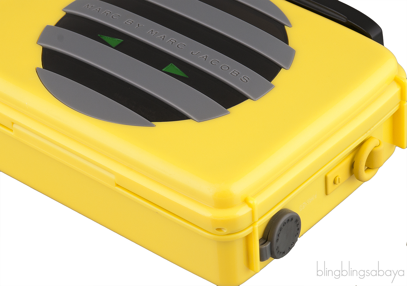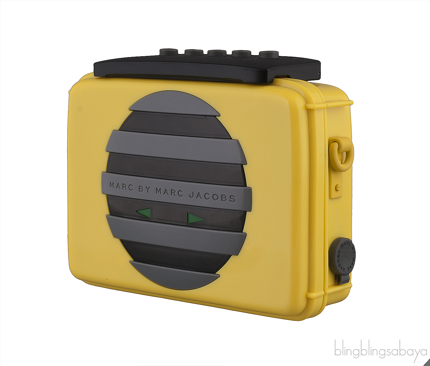 This cute and playful Out-Loud Hard Case Cassette Clutch from Marc by Marc Jacobs is crafted from bright yellow hard case designed as a retro cassette recorder completed with authentic-looking control buttons. Fitted with a small opening at the side to insert your headphone jack, this cross body-slash-clutch is perfect for listening to tunes on-the-go. The soft neoprene lining will keep your gadgets well protected, be it your phone or mp3 player.