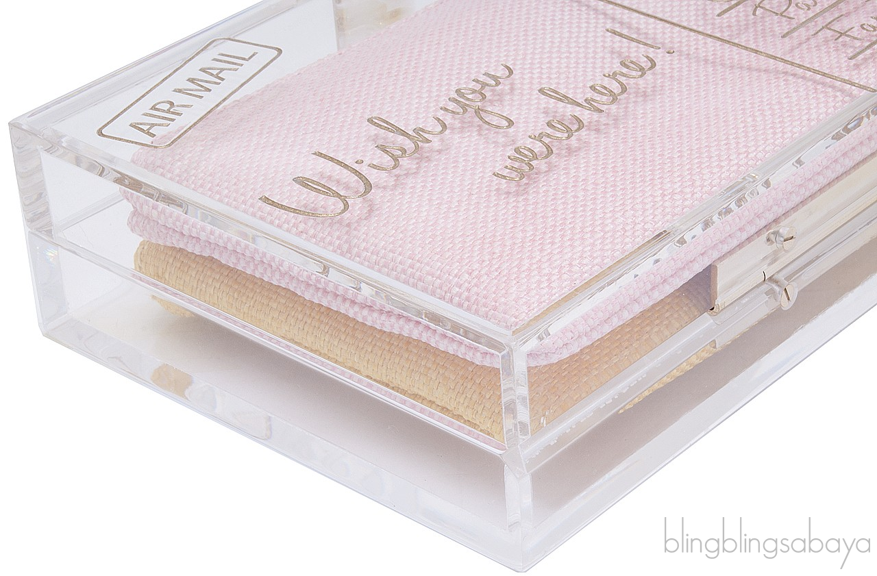 So cool and stunning Plexiglass Clutch Bag from Charlotte Olympia is crafted in transparent acrylic glass accented with the golden hardware. The transparent clutch has the magnetic closure and written messages engraved on the front.
