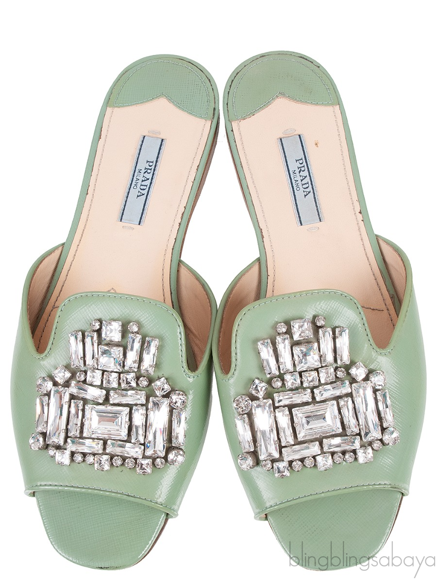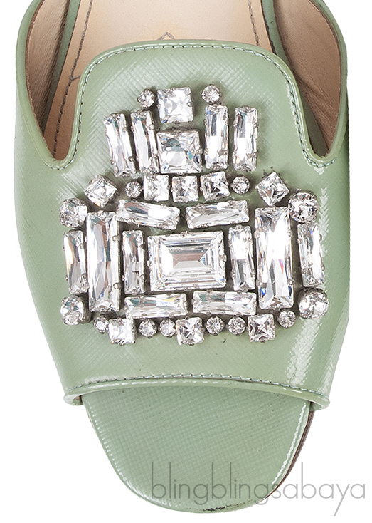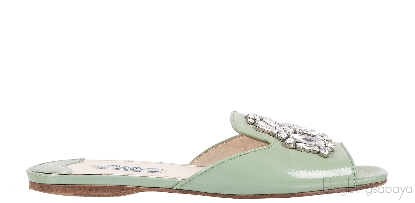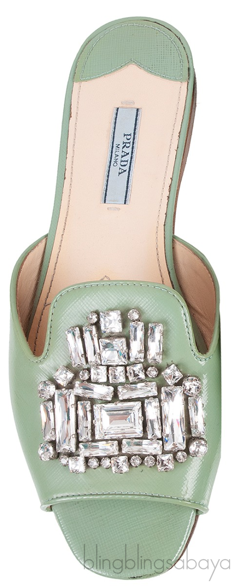 Pastel Green Crystal Open Toe Slide Sandals from Prada!