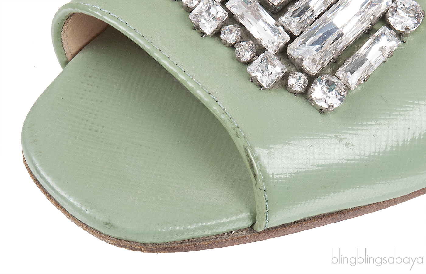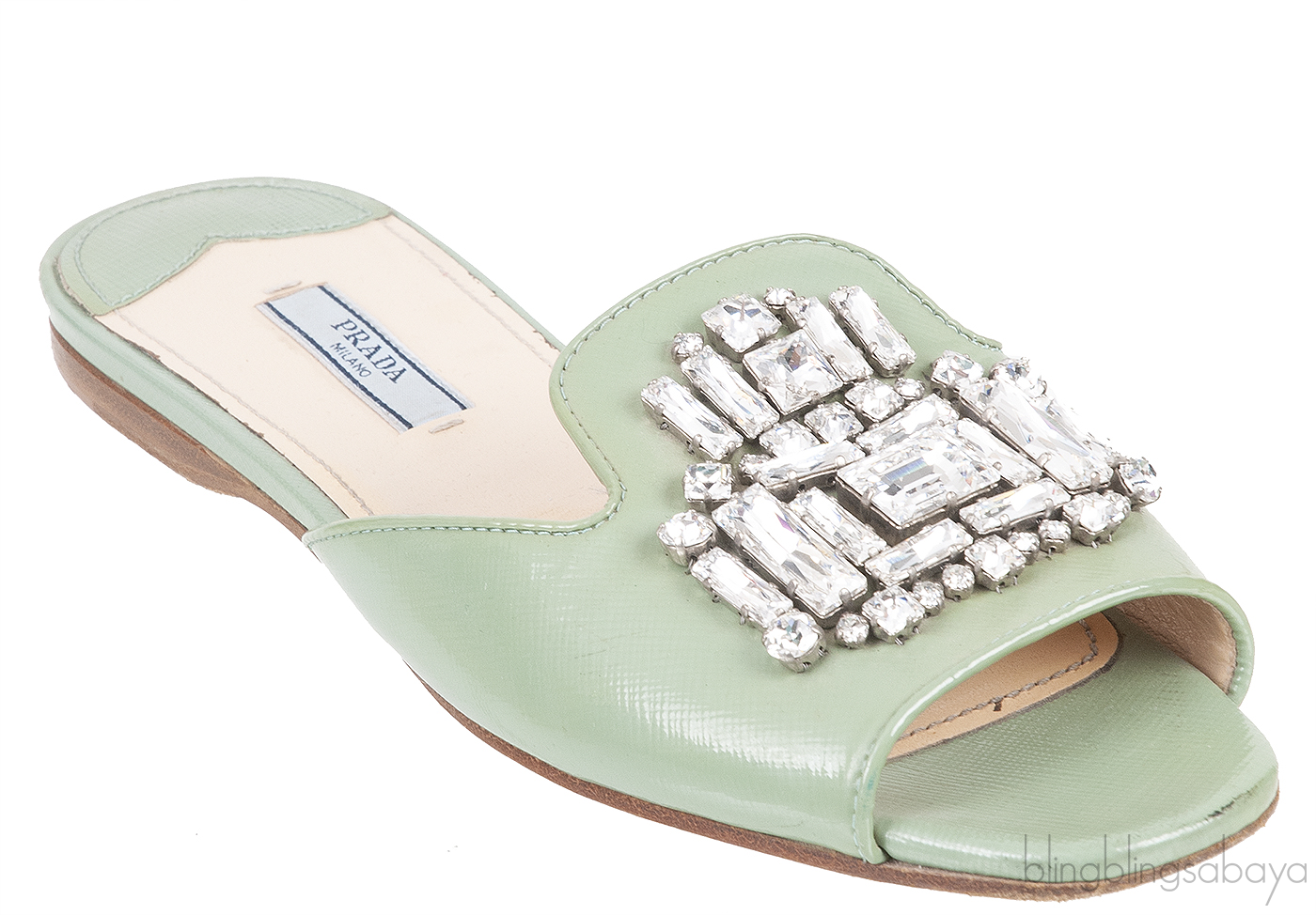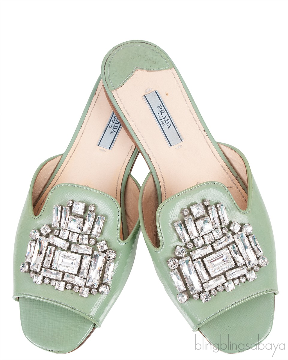 Pastel Green Crystal Open Toe Slide Sandals from Prada!