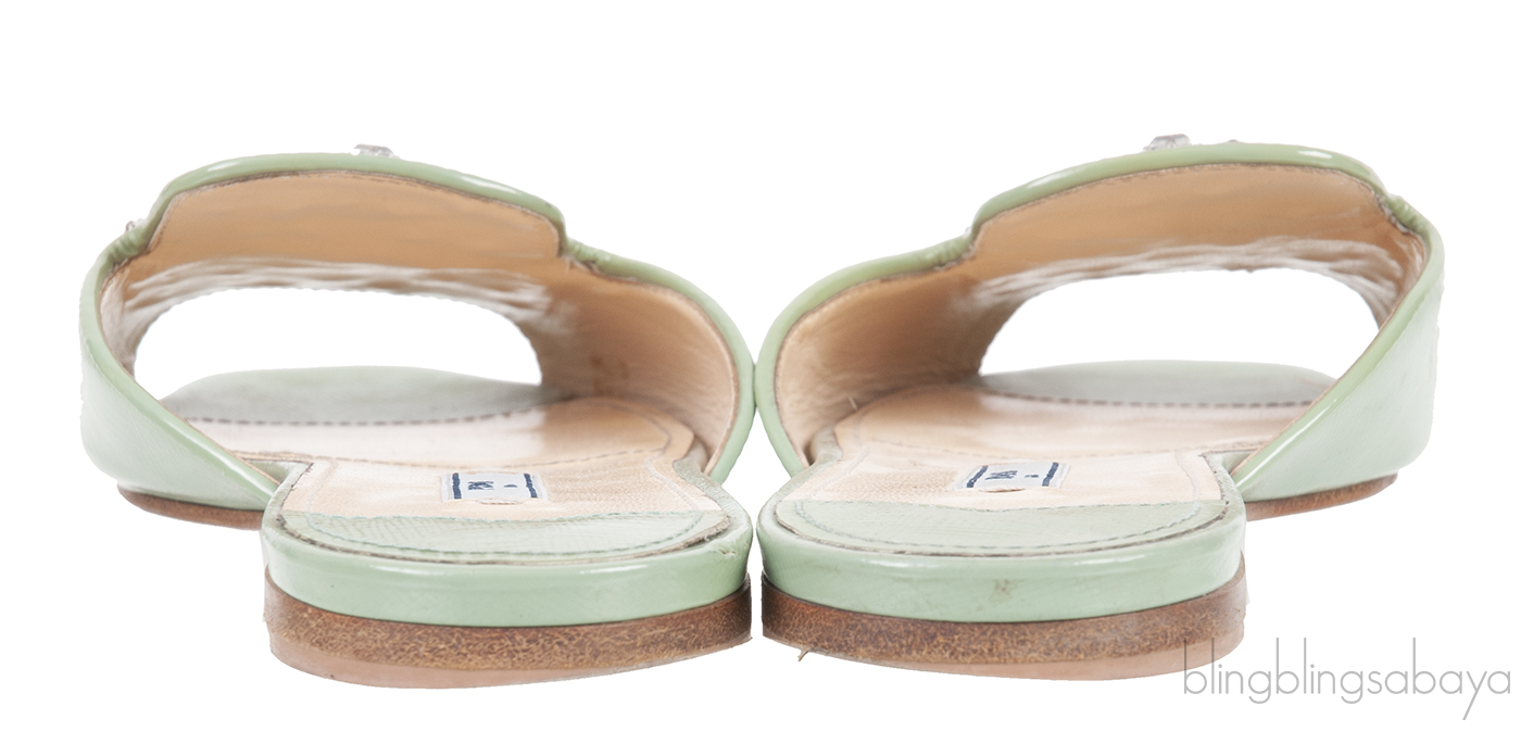 Pastel Green Crystal Open Toe Slide Sandals 38