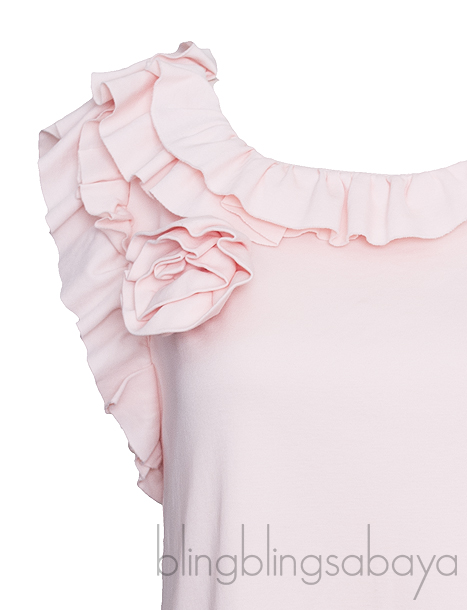 This Peach Sleeveless Flower Brooch from Lanvin is made of 100% Cotton in peach hue featuring a bateau neckline and sleeveless with ruffle trim, floral brooch on right bust, pull-over design.