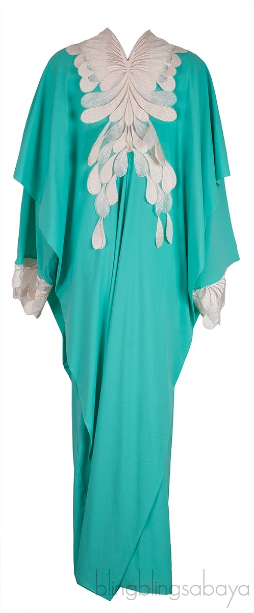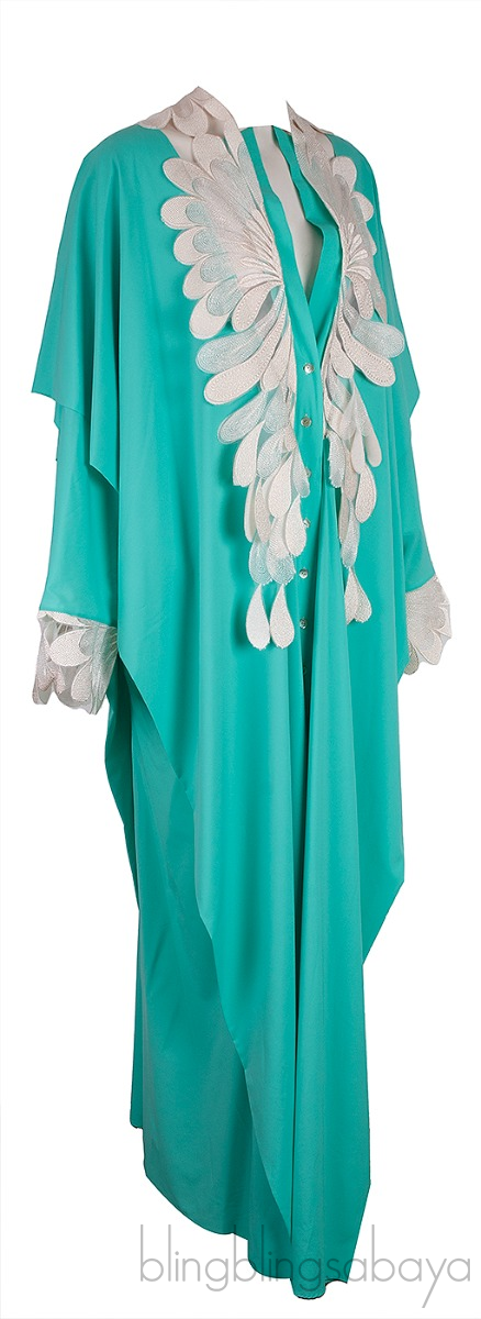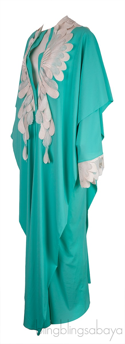 Peacock Lace Mesh Trim Green Kaftan from Olena Dats!