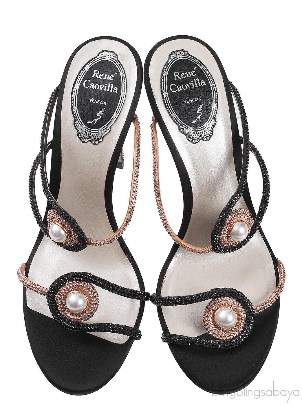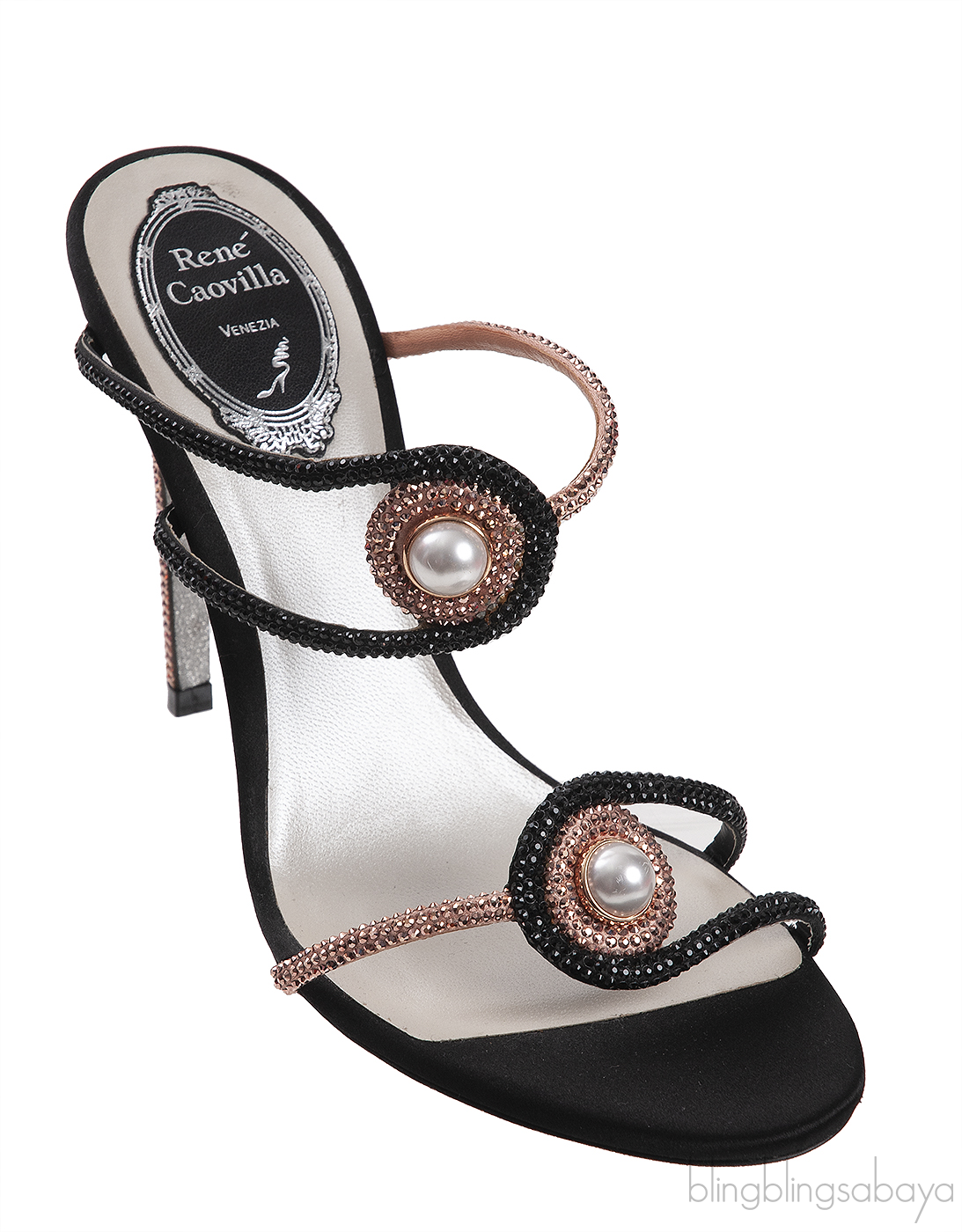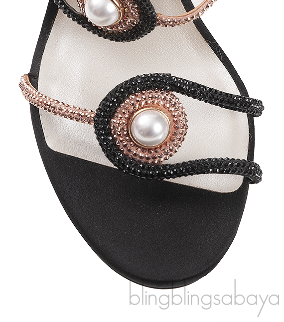Pearl & Rose Gold Crystal Black Satin Sandals from RENE CAOVILLA!