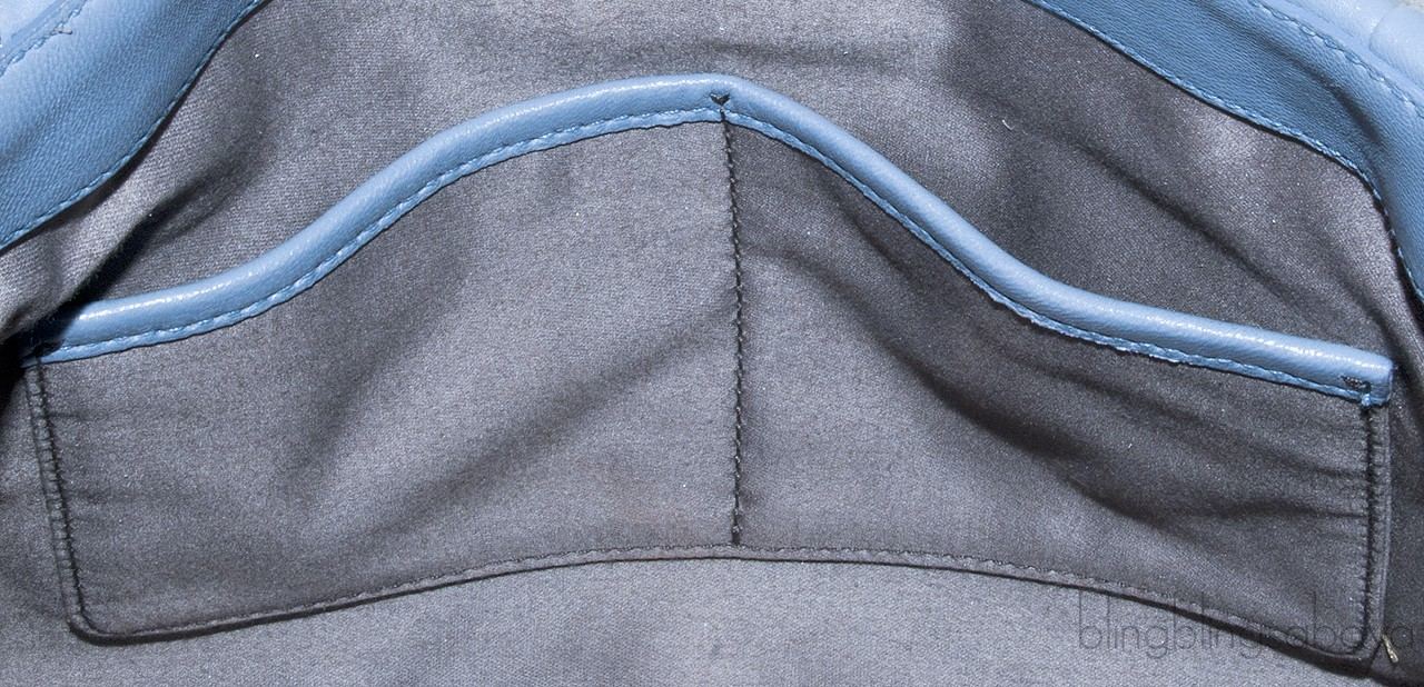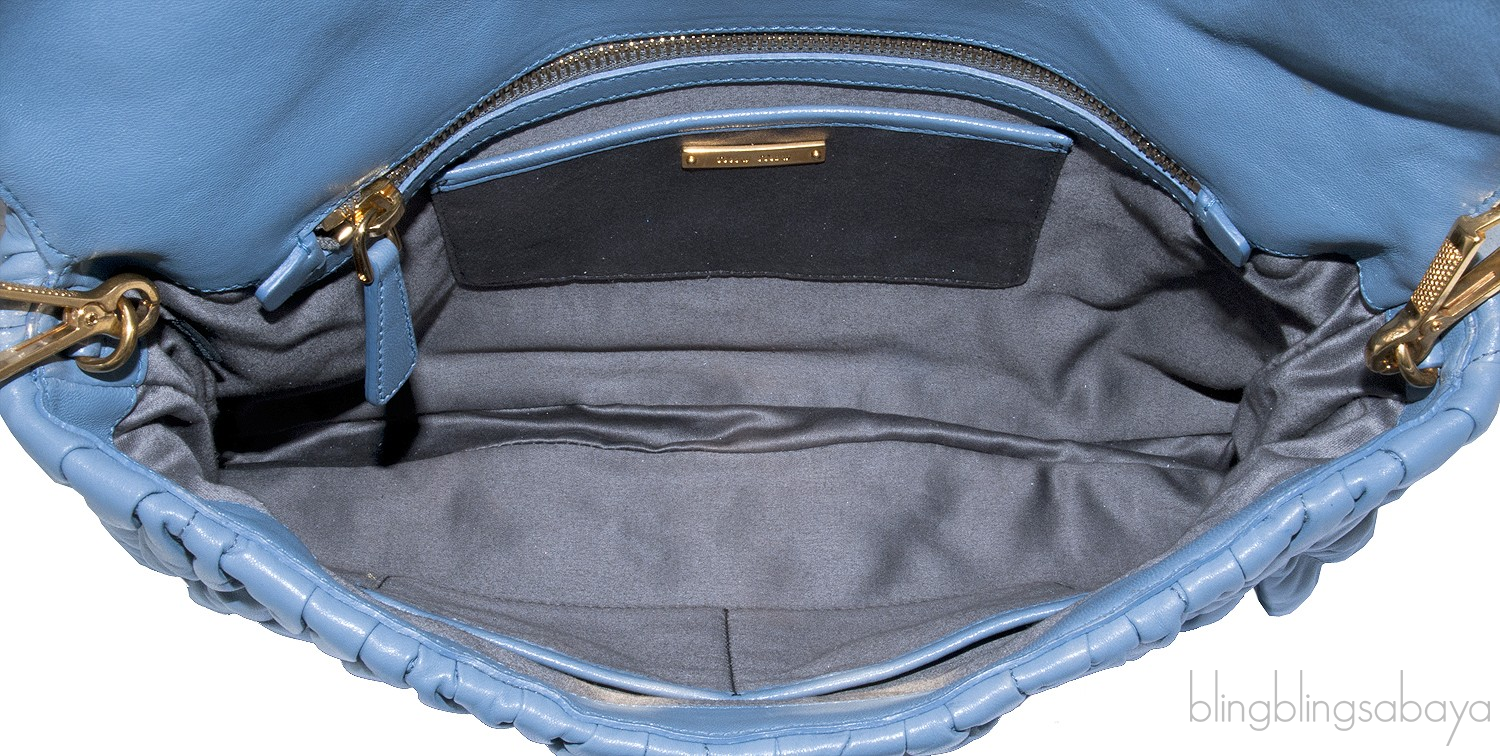 This flexible purse comes with a flat leather shoulder strap that allows you to use as a shoulder bag and can be detached to be used as a clutch. Interior is fully lined with grey fabric and has three flat pockets and single zip pocket inside.