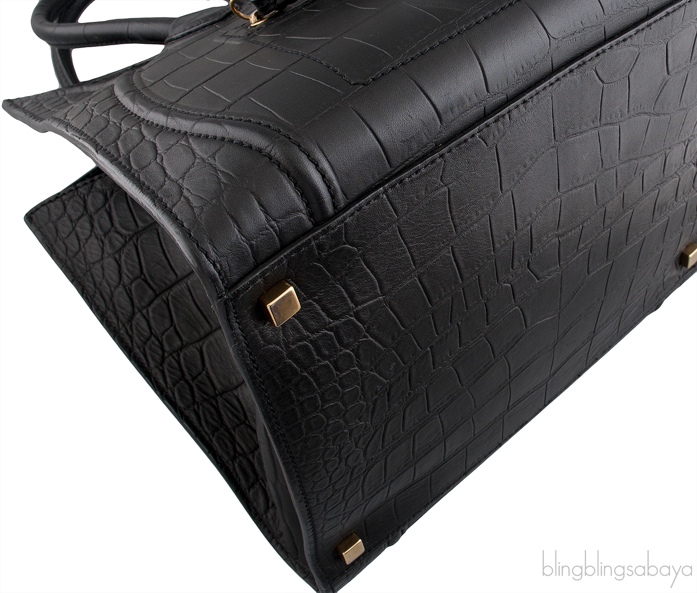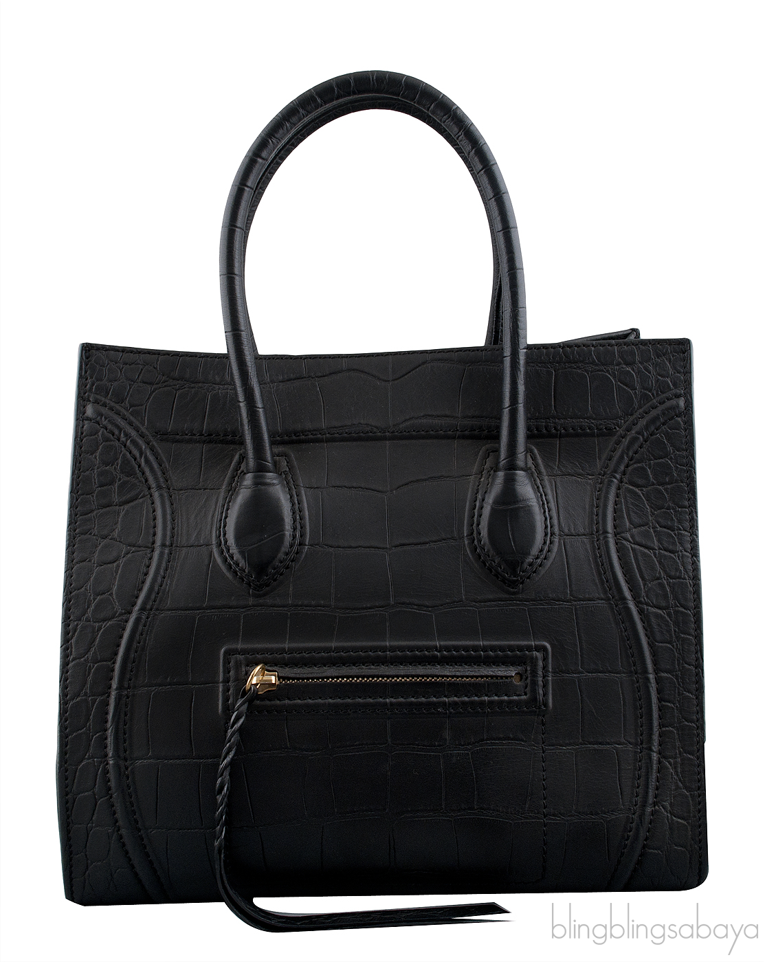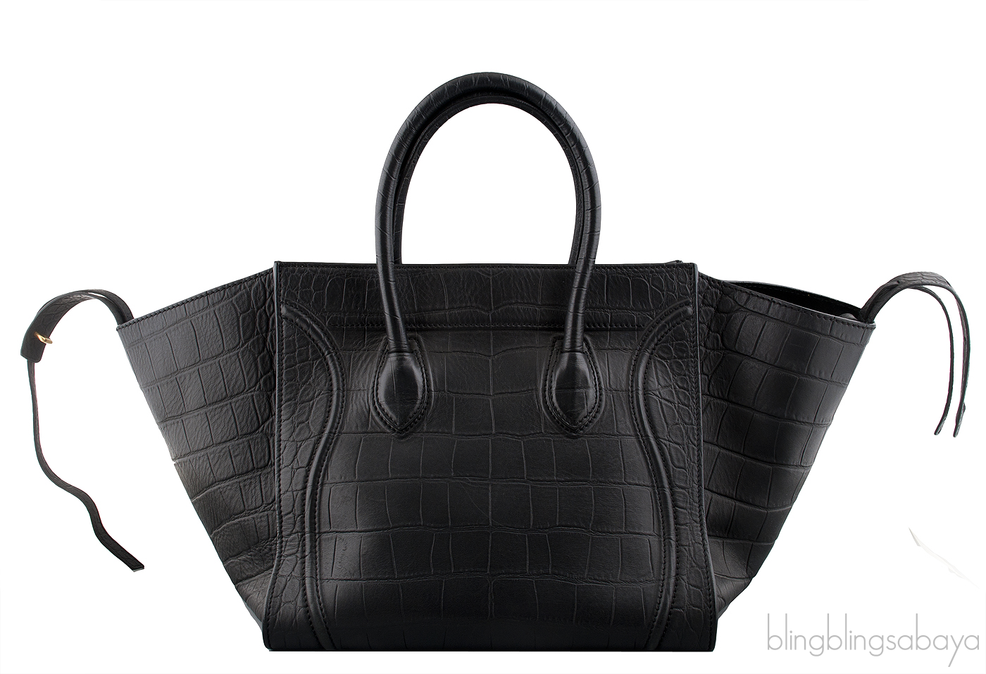 This Black Phantom Luggage is made from a smooth calfskin leather in skillful reinterpretation of Croco printing pattern with a Golden Hardware.